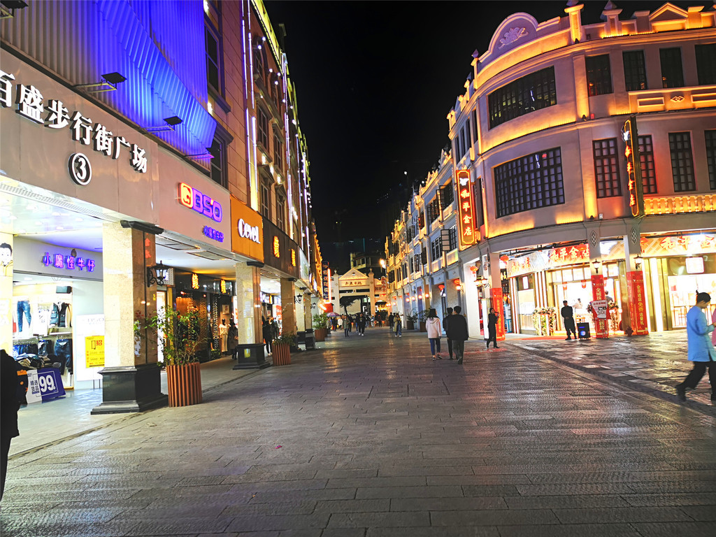 步行街位于兴宁路和民生路,是南宁市最繁华的百年商业老街(步行街一隅)