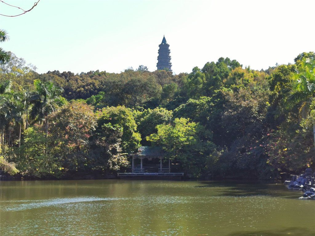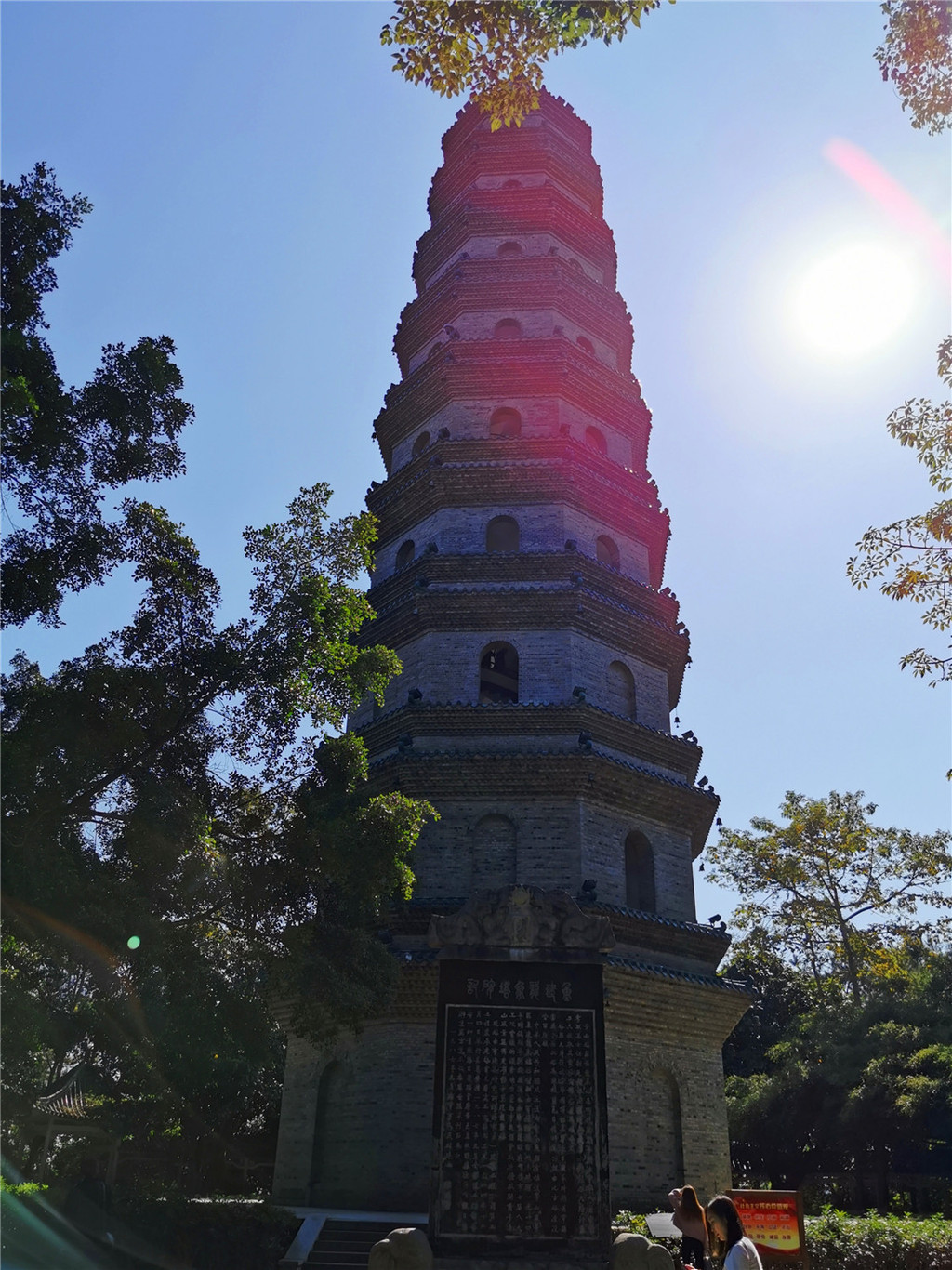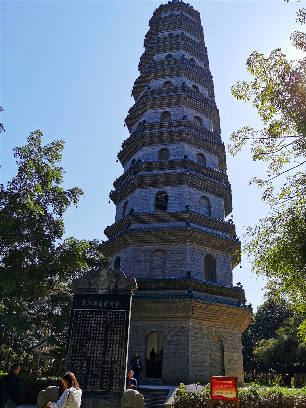 1986年在原址重建龙象塔,八角九层,重檐砖结构,绿色琉璃瓦,内设旋梯207级直达塔顶,每层檐角下均悬挂铜铃,为广西第一高塔。