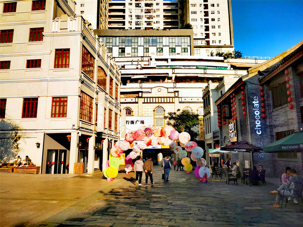 汇聚购物、餐饮、休闲、娱乐、商务功能一站式骑楼街城(步行街一隅)