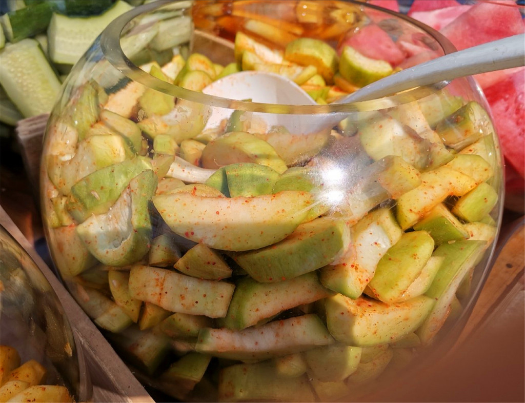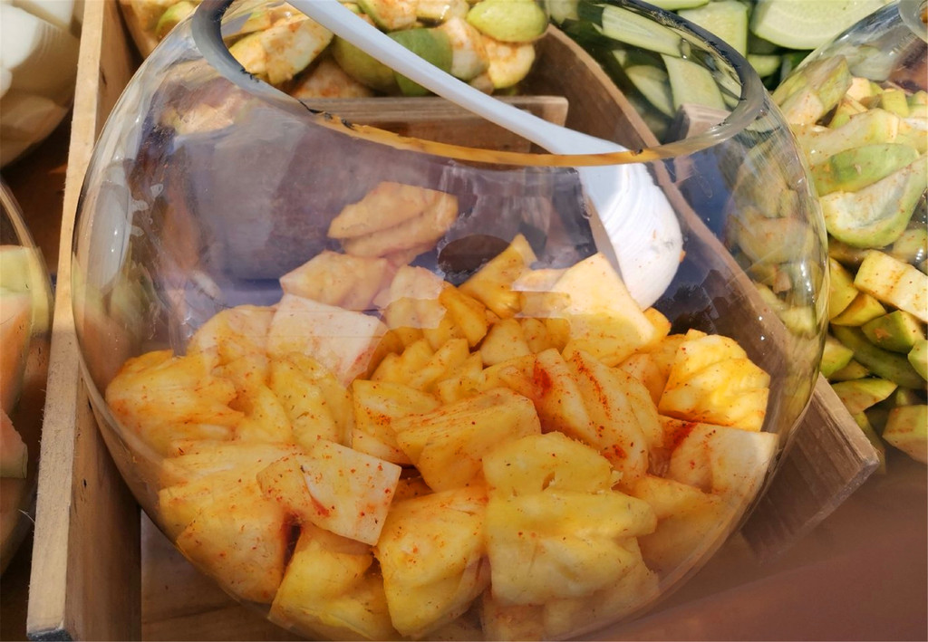 酸嘢吃起来酸、甜、香、辣味味俱到,脆爽可口,生津开胃