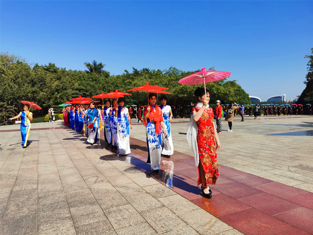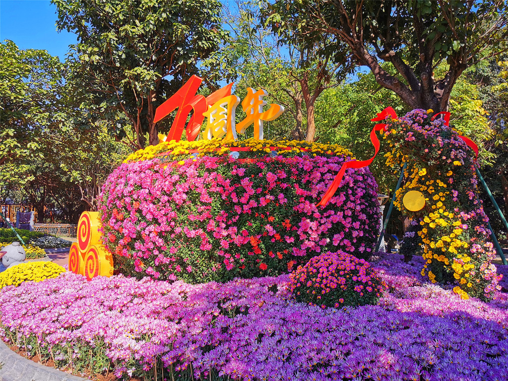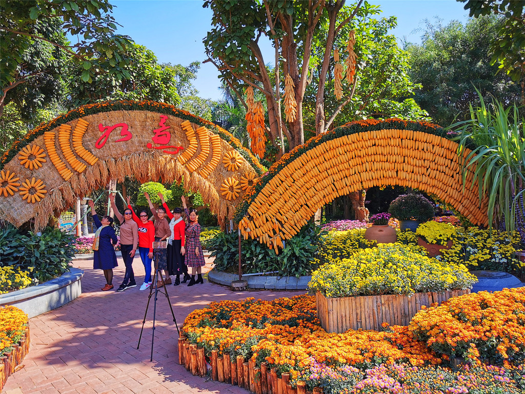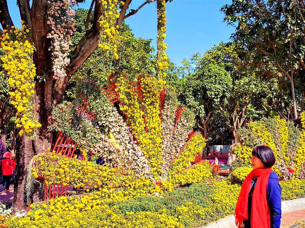 在东盟国家友谊园正在搞2019青秀山菊花展,游兴正浓的游客们拍起照来,也是不分伯仲