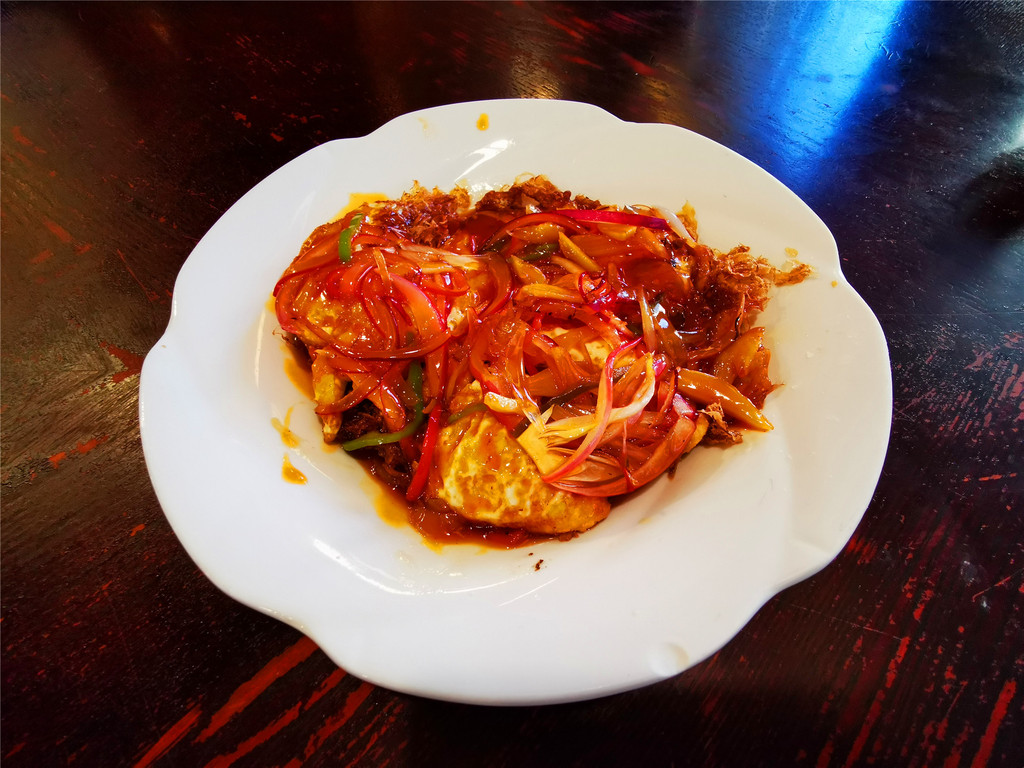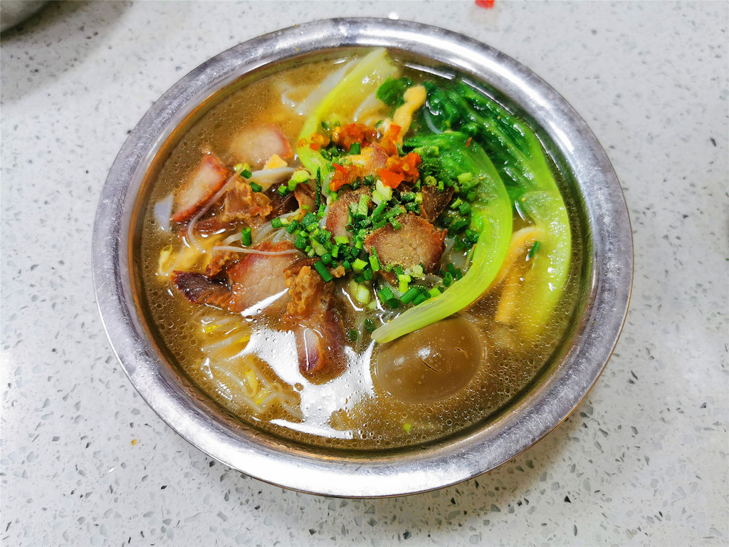 打卡老友粉,做好的老友粉,可以加卤蛋、豆腐干等,我加了一个卤蛋。