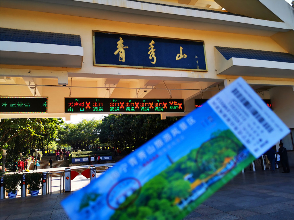 今天作为这次旅行的修整日,早晨睡到自然醒,在酒店附近吃过早餐,在火车站坐地铁,南宁的地铁人不多,甚至还有座位,将近40分钟到达青秀山站,从B口出来,就是景区的西大门。