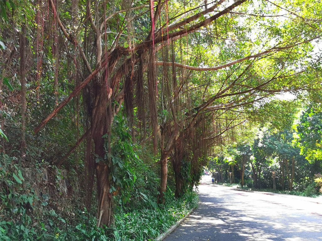 通往龙象塔的路上,榕树须就像是挂在树上的咖色旗,用她特有的方式欢迎四面八方的游客