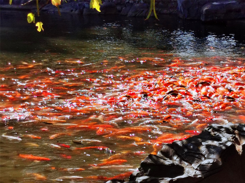 天池面积达到一万五千平方米,水深2-3米,池水波光粼粼。