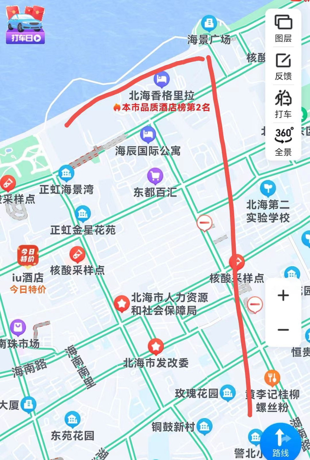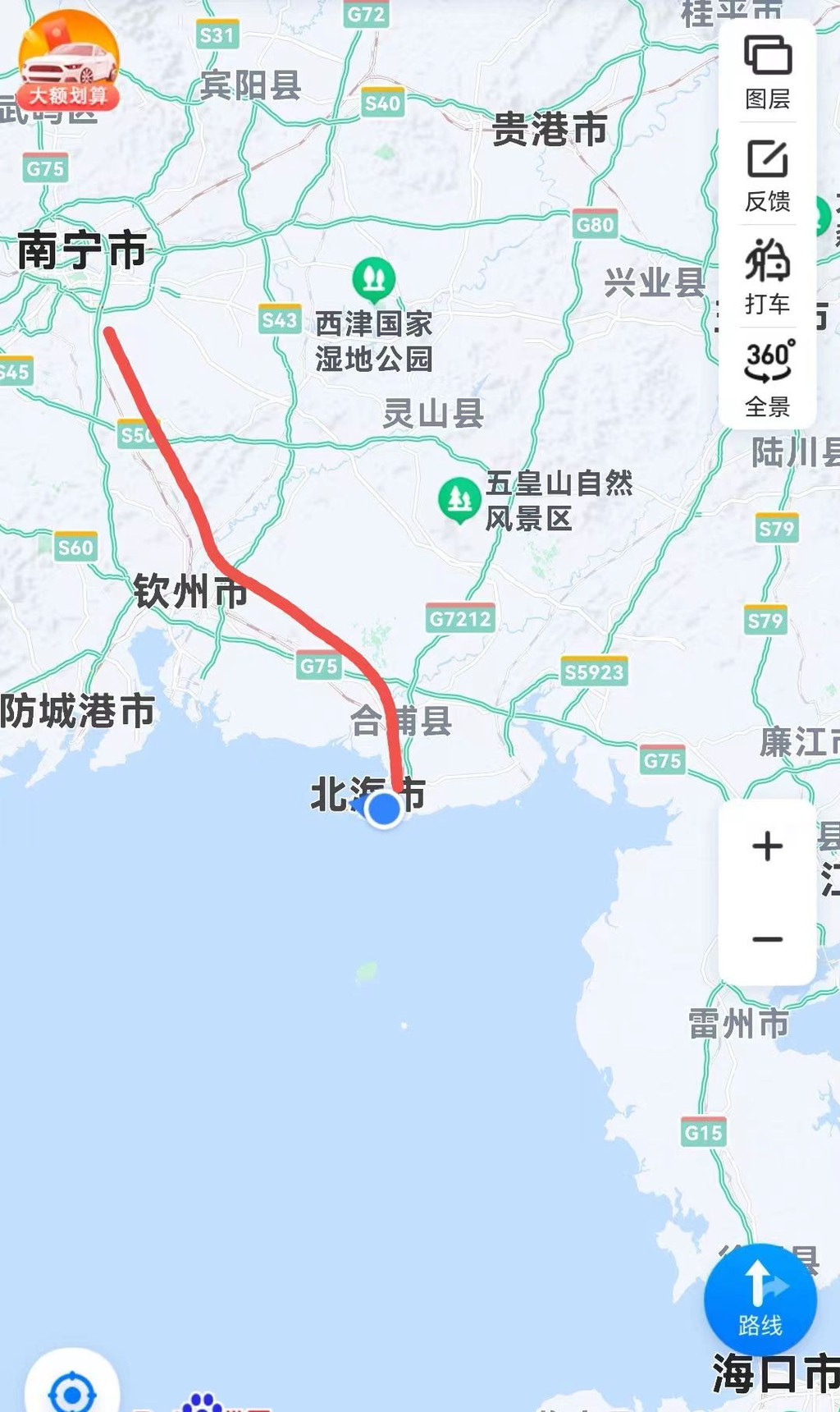 到达南宁后,取行李和落地核酸检测,排队免费大巴送往南宁东站乘高铁,历时三小时。乘高铁有工作人员引导顺利上车,运行一个多小时到达北海站,打车20元到达住宿处。