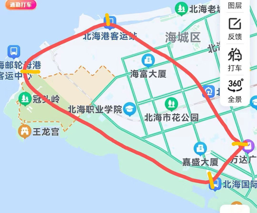 今天骑行沿海边环城半圈约36公里,感受到她的发展历史。原来的北海客运港客运业务已在新的国际客运港进行,还有正在建设中的国际邮轮母港。