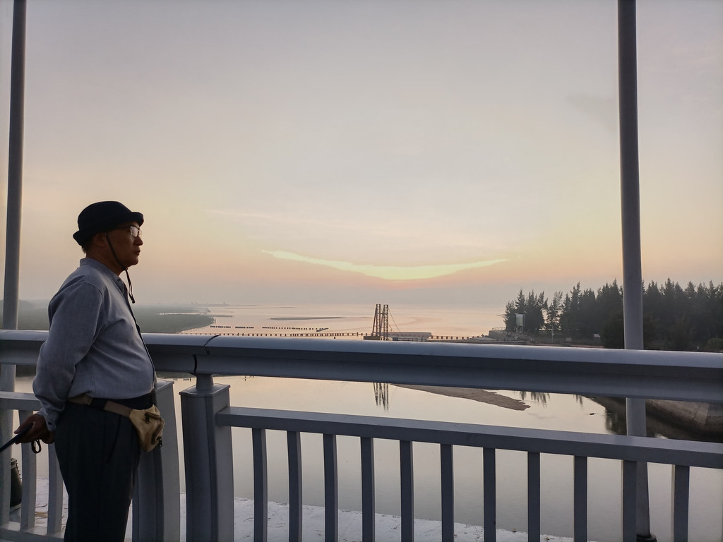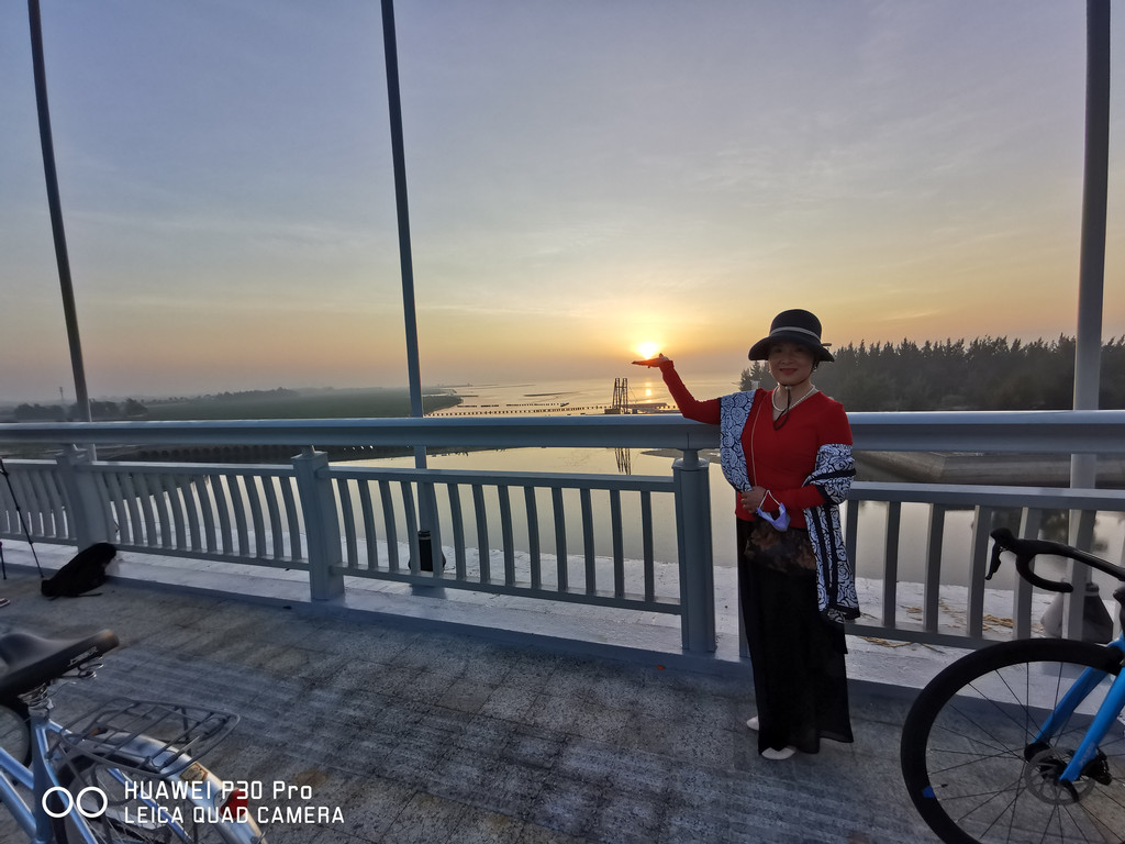 D8、通过上次在新的冯家江大桥上看日出,发现它前面更靠海的位置,那座老桥更低距海面更近,更有特色。早饭后,约好朋友们一起骑着电动车半小时来到这里,感受下它的特有魅力。