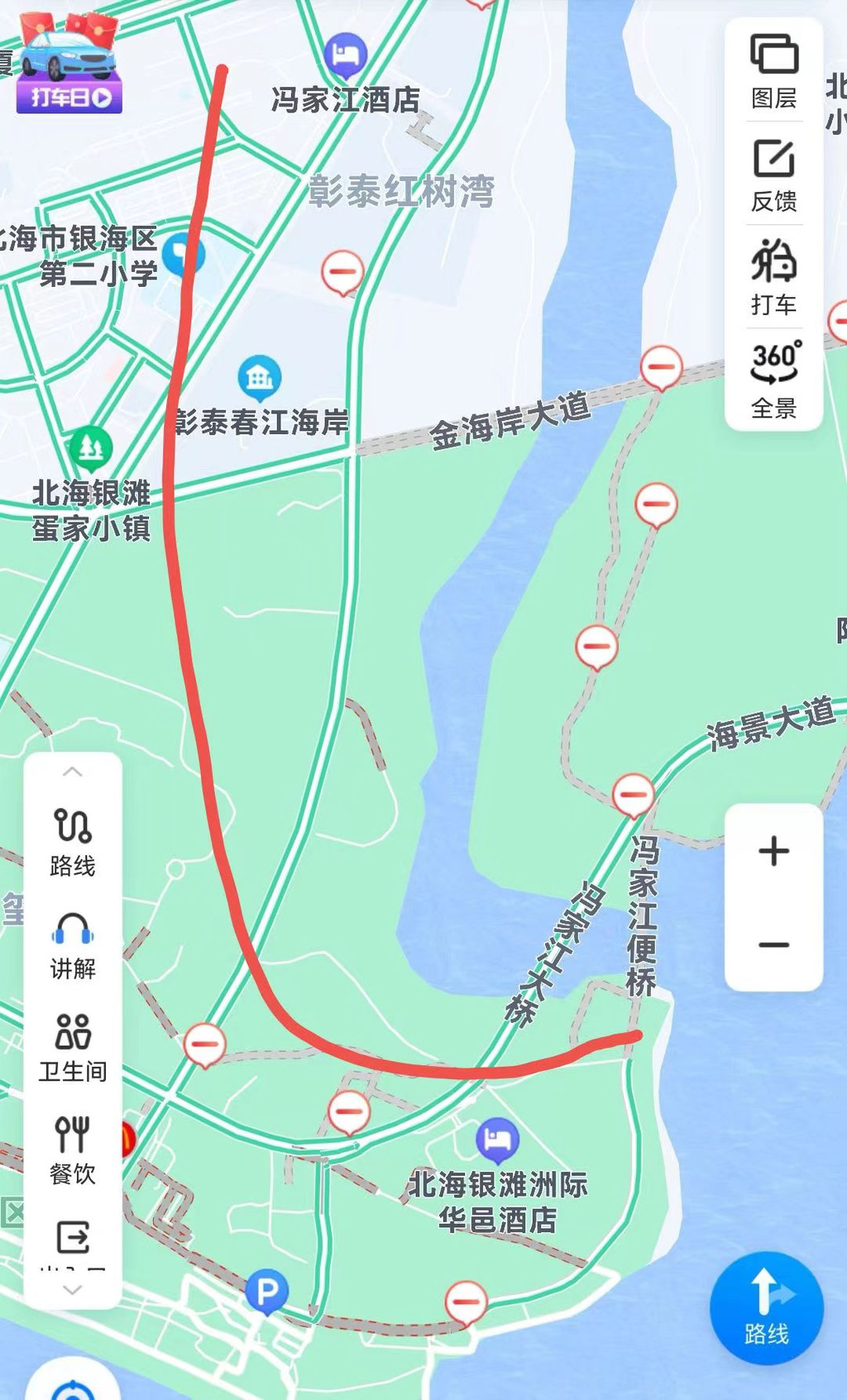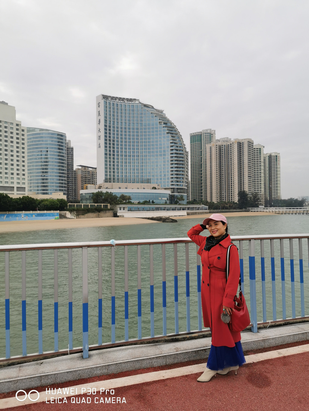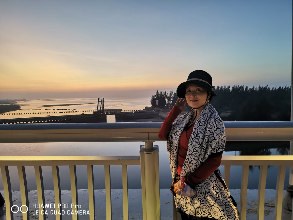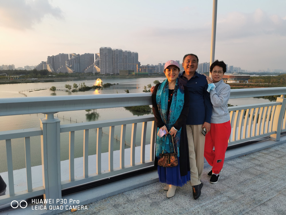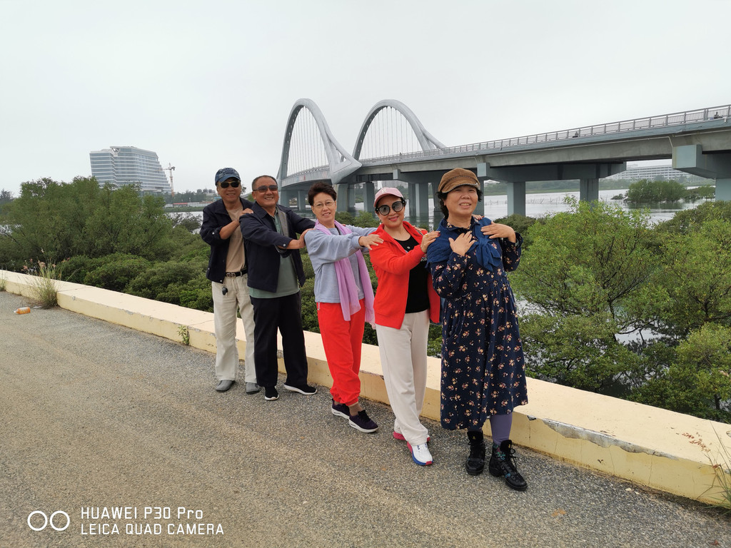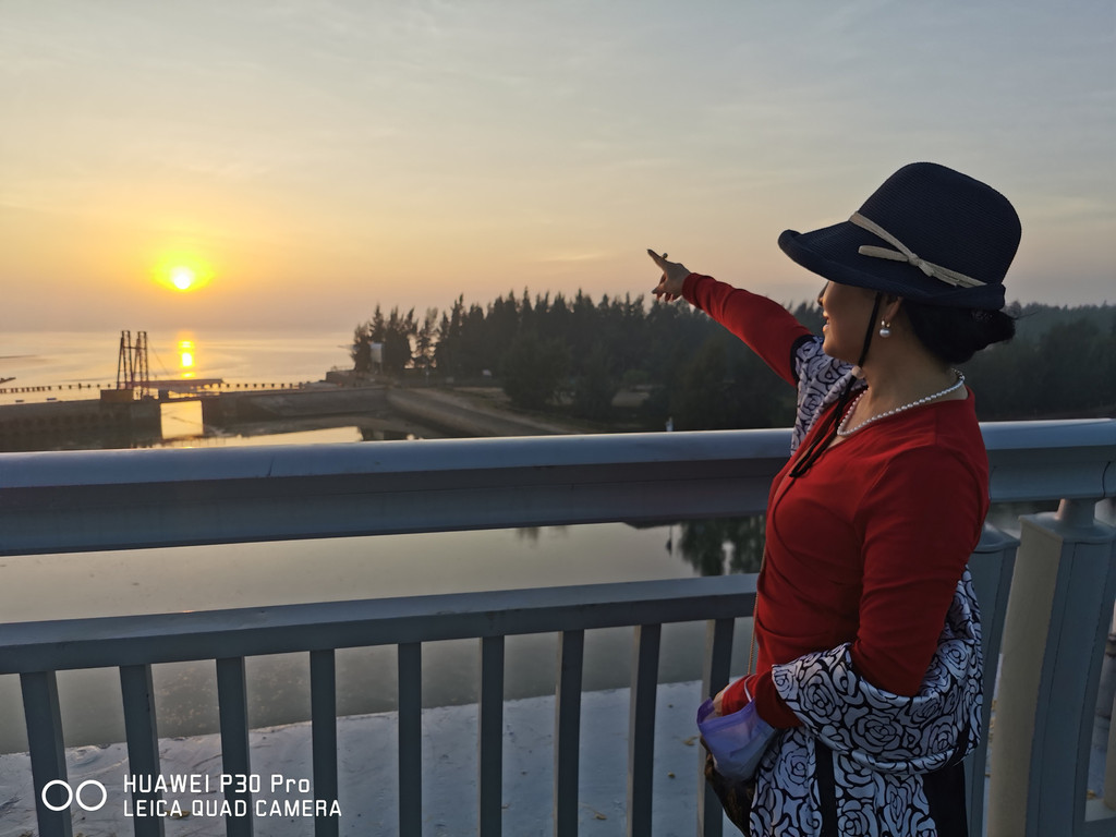D7、北海很重要的冯家江大桥建成后,据说是早上看日出最好的地方。我们也想体验一把,于是早上六点骑上电动车出发,来到桥上中央位置是六点四十多分分钟。天还是黑乎乎的,有不少游人已经在此聚集了,手拿相机、手机等待拍摄日出东方的景象,我们也不例外。远处薄雾处,有一较为明亮的地方,逐步增大逐步明显,七点过三分,一个半圆的小球透过薄雾露出水面,逐渐升空越来越大,形成一个整圆,红红的亮亮的闪着金光,非常漂亮和壮观,有海平面和红树林、以及建筑物的陪衬,更具画面感。人们拍照留影、视频欢呼,开心抒怀,看此盛景一整天心情都是美好的带有无限的希望。约半小时后,我们骑上电动车返回住地,开启新的一天美好的康养生活。