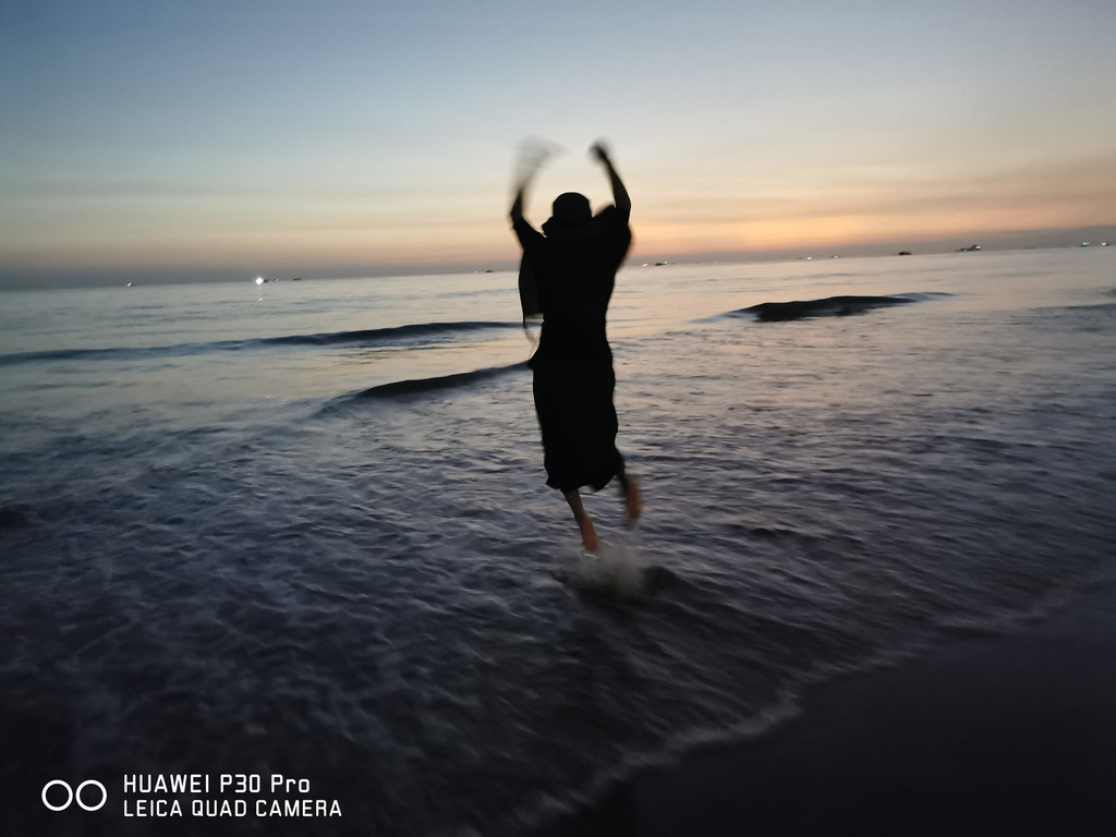 晚饭后,骑电动车带夫人再游银滩,感受美妙的夕阳西下,踩着细柔的白沙,温暖的海水冲击微抚,非常惬意。