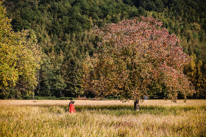 走出了宏村,不远处是金黄的稻穗,在秋日的风中静静地微笑,我们奔跑在金色的海洋中,感受着大自然的魅力,风是甜的,你的美的。这样的喜悦似乎很久都没有了,像是回到了童年那般无忧无虑。