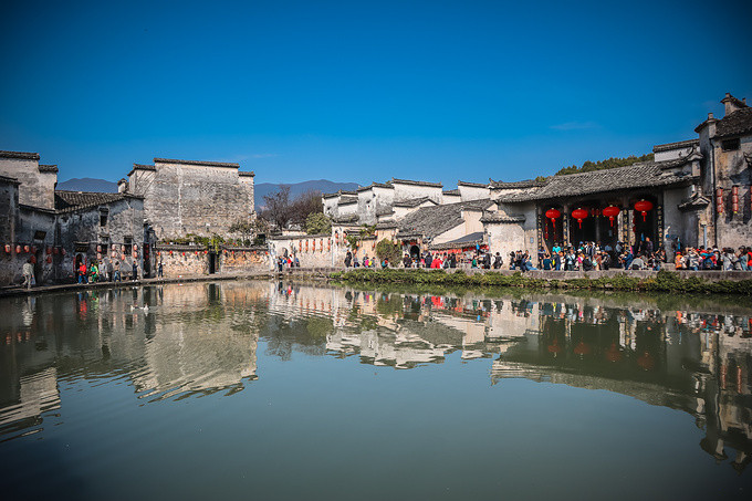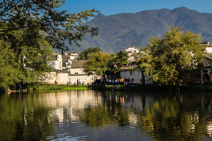月沼是整个宏村人最多的一个观景点,在拥挤的人群中一定要注意安全,或可以选一个地方静坐一会,将心沉淀下来,暂缓脚下的步伐,亦可静听水中涟漪声,亦可静赏徽州的黑白马头墙,心中沉静了,幸福亦是如此容易。