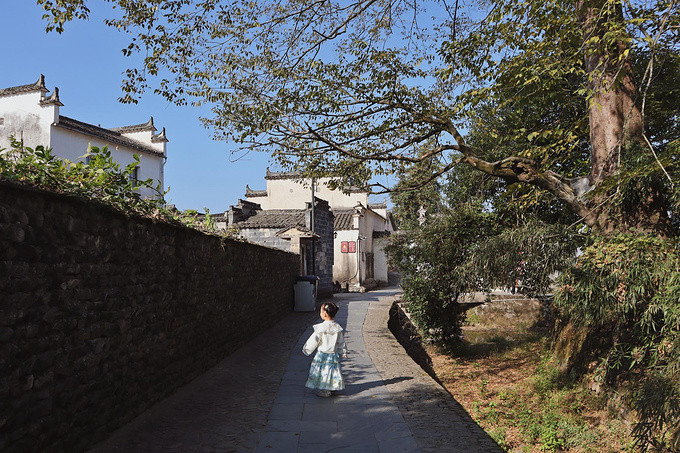 还真的别说,在宏村穿个汉服,或者马面裙一类的服装,加上光与影的美学,真的非常出片。像是一场穿越,美轮美奂。