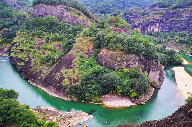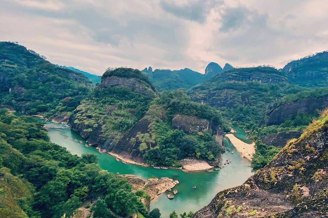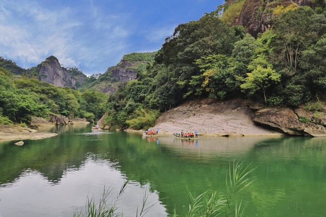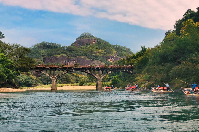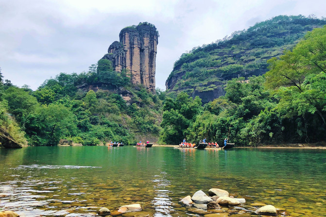 武夷山的九曲溪漂流,是旅途中不容错过的。山水之间,这个溪水自然是武夷山的灵魂。乘坐竹筏漂流,换个角度欣赏武夷山的美景。