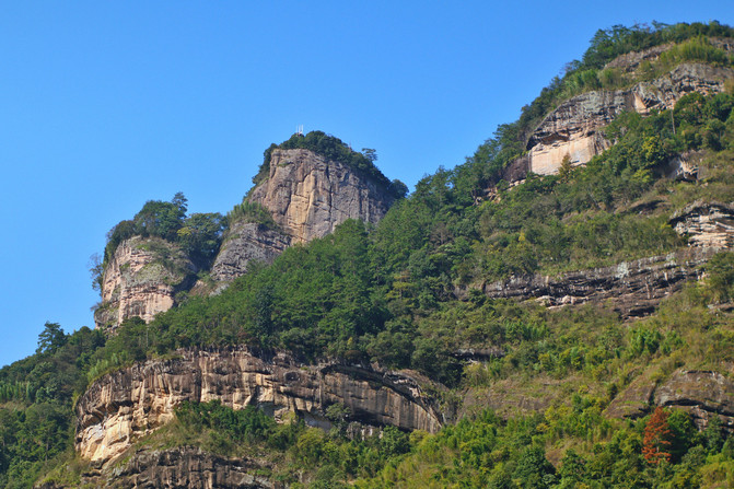 天游峰上名木古树众多,常绿阔叶林郁郁葱葱。明代著名地理学家徐霞客赞道:“不临溪而能尽九溪之胜,此峰固应第一也。”