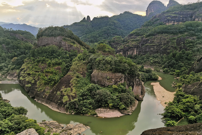之所以叫九曲溪,是因为这条溪弯弯曲曲的,经星村入武夷山,折为九段,分为九曲。
