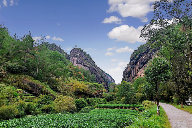 大红袍景区因出产武夷山最著名的大红袍茶而得名,景区的景点之一就是大红袍茶树,它位于岩腰的盆式茶园内,共6株。