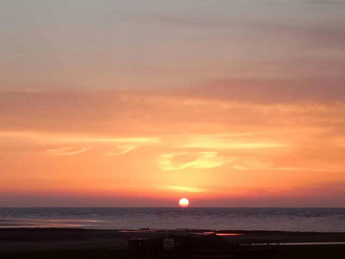 这里位于南通启东寅阳镇,寅阳顾名思义是最早能看到日出的地方,靠海的独特观景优势,当然不能放过这次绝佳的机会,预约了前台的叫早服务,准备来一场海上日出观赏。