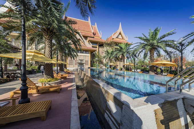 泰国馆最亮眼的是普吉无边际泳池,躺在棕榈树下仿佛能感受到泰国的热情。
