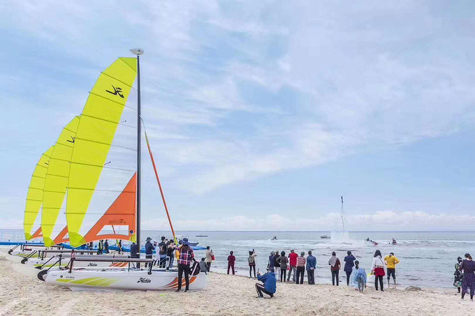 居家做饭看电视时间久了人也变的慵懒了,看见这碧海银沙不由自主的嗨玩起来,有小朋友在挖沙玩水,也有体验水上运动透明船,整点还有水上飞人表演,话不多说,一一来试。