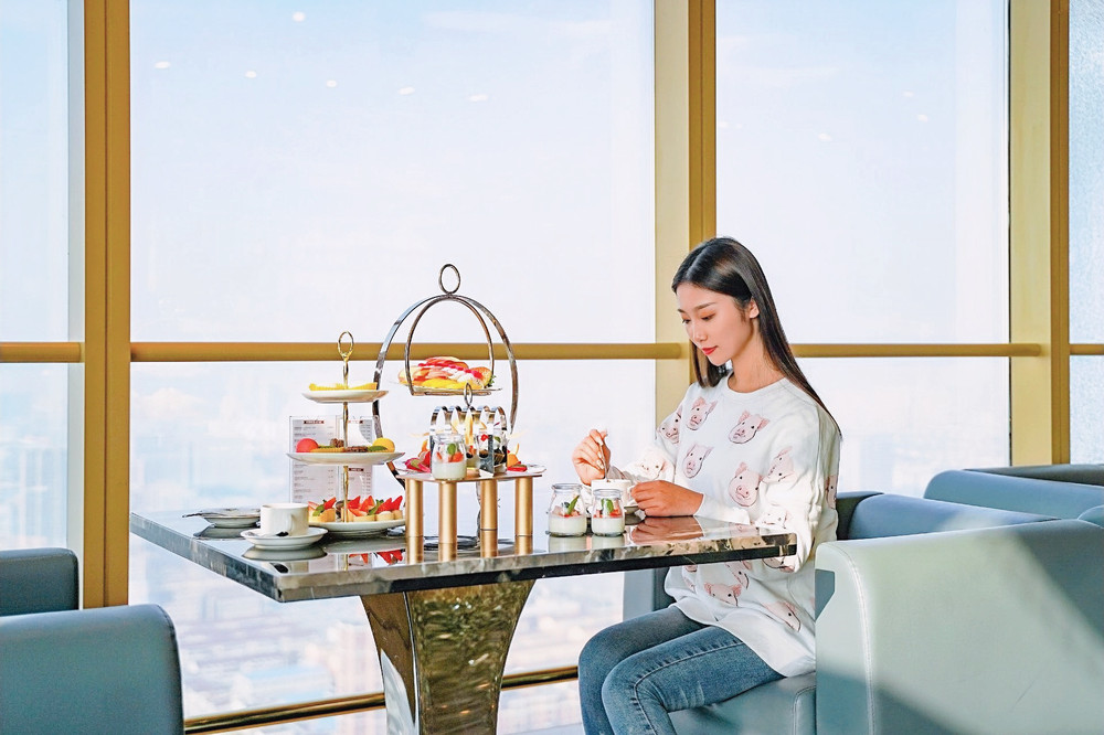 在享受完河豚宴后,移步来到云顶餐厅,享受一份精致的下午茶。这里是一处得天独厚的观景台,可俯瞰城市全景,随意选择一个靠窗的位置坐下,精致的马卡龙蛋糕、丰富的水果拼盘,搭配一杯浓郁的热牛奶,温暖而惬意,是情侣们约会的首选之地。