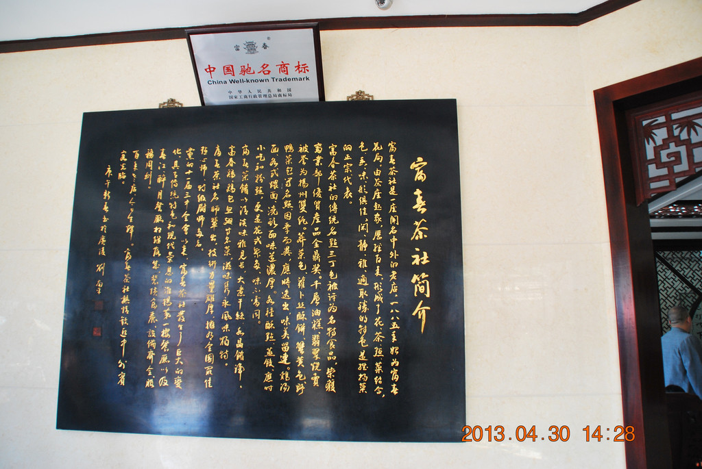 久负盛名的富春茶社,下午休息,3点半恢复营业。