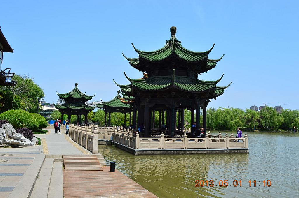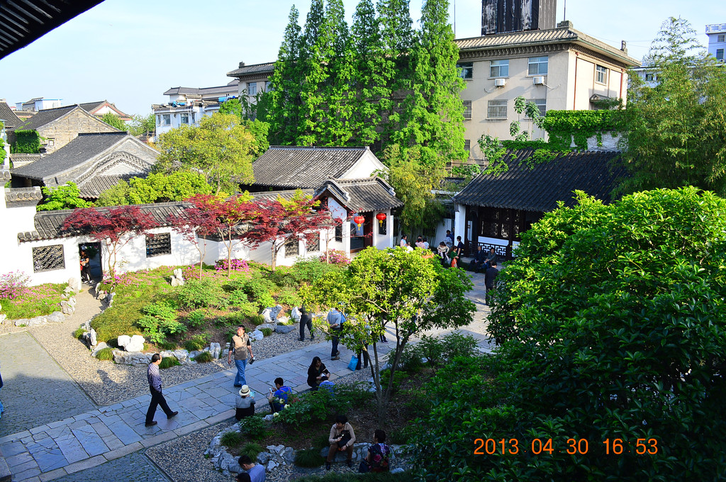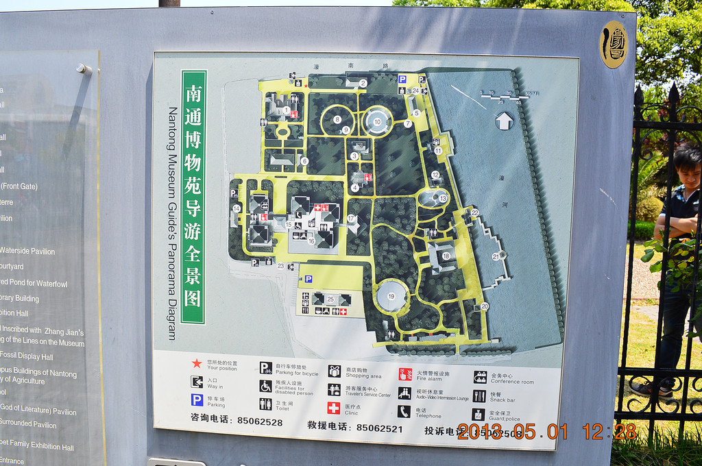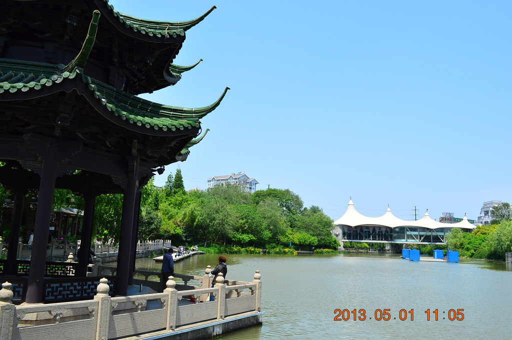 2013年4月29日至5月1日。“五一”小长假的景点人挤人,可对于我们一家来说,还是不容放弃的出游机会。当然,我们也碰到了堵车。4月29日离开上海,从市区往江苏方向的沪宁高速、沪嘉高速均拥堵,不得不绕道上海绕城高速再走沿江高速。5月1日返回,过上海长江隧桥花了2个多小时。远远望去,长江大桥上如同一个停车场。由于带着岳父母一起出游,此行安排的第一天,再访今年1月游过的常州。节日期间的扬州住宿费普遍涨价,且锦江之星门店客满,安排住在距离扬州30多公里的仪征,房价与平时一样。考虑到返程的方便,最后一天游览了距离上海相对较近的南通。我此前已经游览过这三个城市,因而,此行没有再安排瘦西湖、个园、狼山等景点。其中,何园是我第四次游览。此行主要看一些全国重点文物保护单位,先后拍到6块国保碑,参观了其中的5处,收获相当不错。最后,顺道在启东吕四港美餐一顿海鲜,并采购海产品回家。下图所摄为南通博物苑,河为濠河。全程共810公里,自我感觉驾车不算很累。