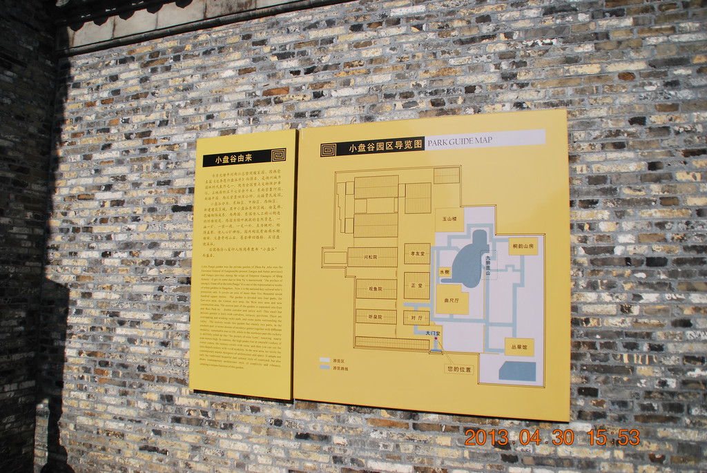小盘谷,国务院2006年5月25日公布的第六批全国重点文物保护单位,古建筑类,时代为清,地址江苏省扬州市。门票20元,下午4点关门,我到的时候是3点52分,只能匆匆拍照不到10分钟。