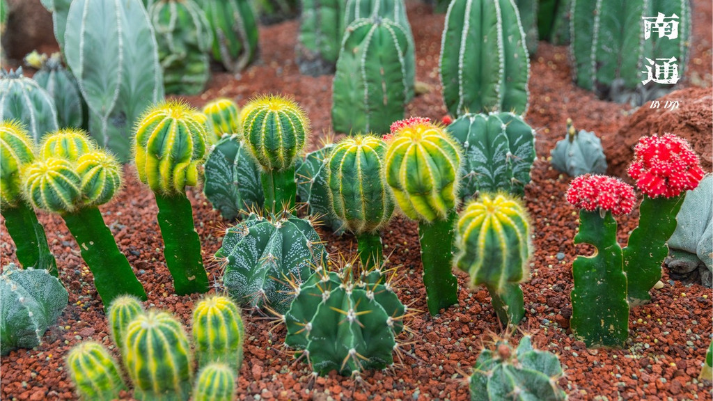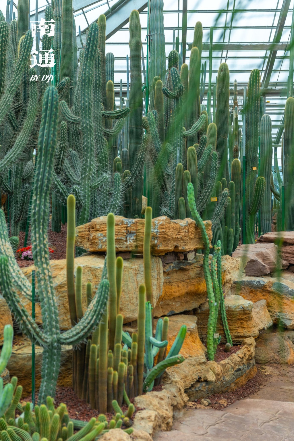 这里汇集了世界上所有生态型的沙生植物,也是目前国内品种收集最为齐全的沙生景观温室之一。行走在各种各样的仙人掌之间还真要小心翼翼,因此在曲径通幽的小径上,会有贴心的警示标牌,提醒游客注意避让,我觉得这个馆里的仙人掌都很萌,特别是这个红头仙人掌。