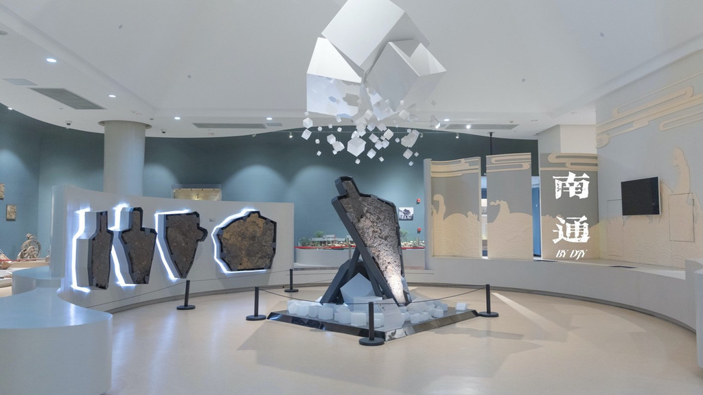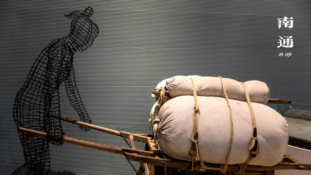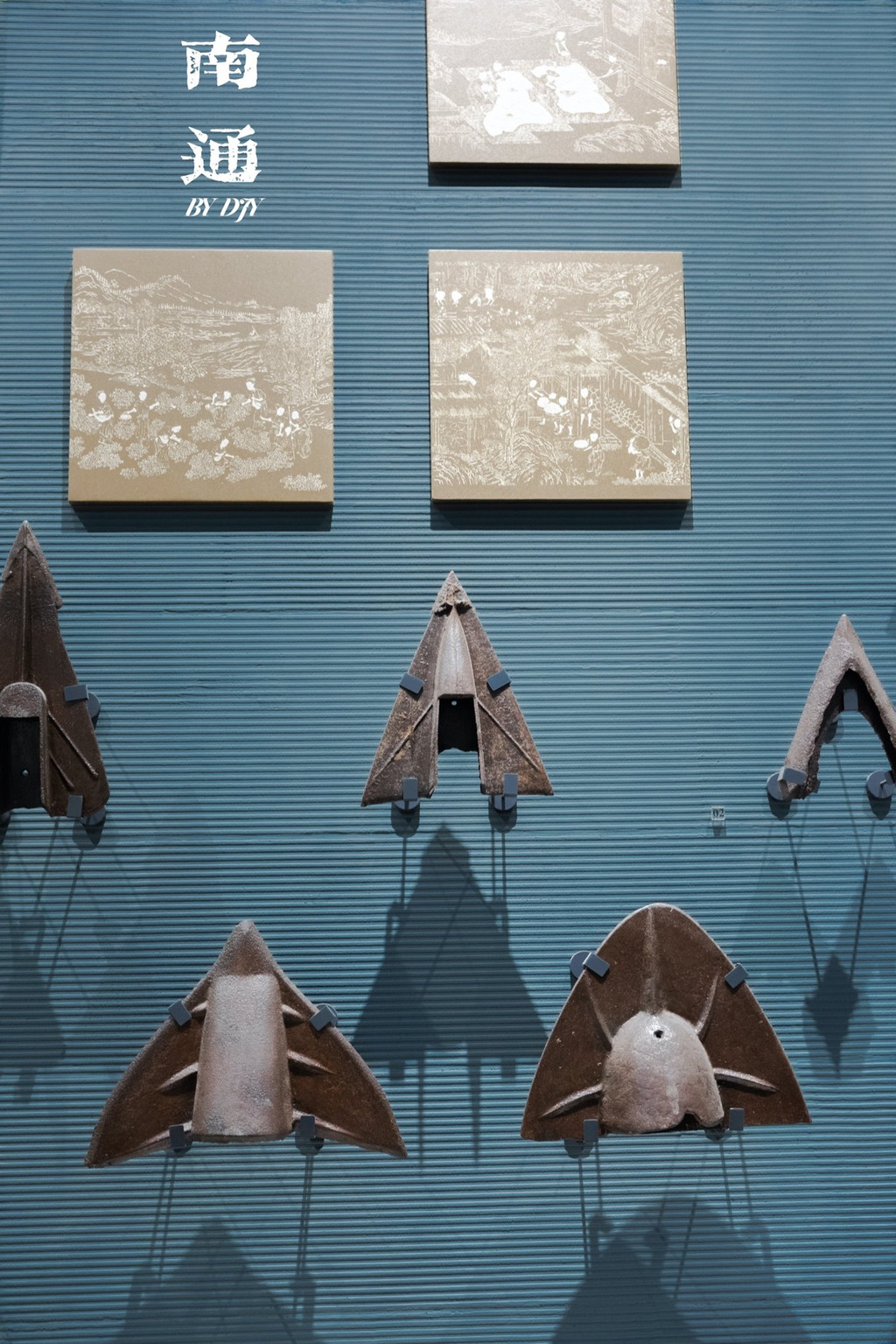 《江海古韵》展厅分前言、江海沧桑、盐棉兴邑、城镇肇基、文华逸韵、开启新 天等 六个部分。为了让我们直观了解煮盐、棉纺的工艺流程,展馆内还有很多与其相关的布置,很用心也很精致。