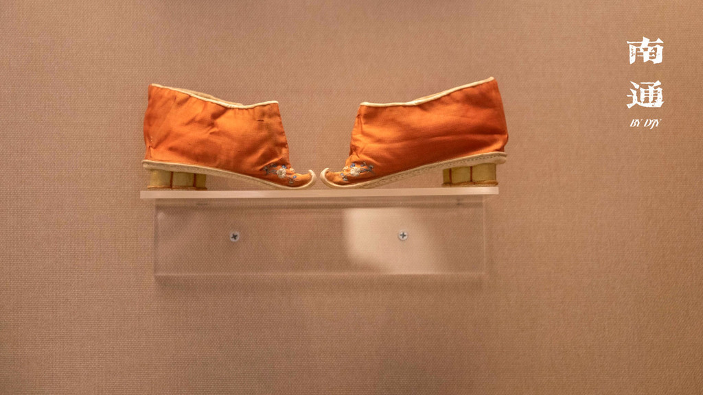 文华逸韵单元分礼仪与宗教、文学艺术、市井生活等小专题,展品看似平常,实则精挑细选,件件都带有强烈的本土色彩。三寸金莲,鼓形錾花锡粉盒,喜筵请帖、红缎礼服等,这些呈现了 南通 本地原汁原味的婚俗。