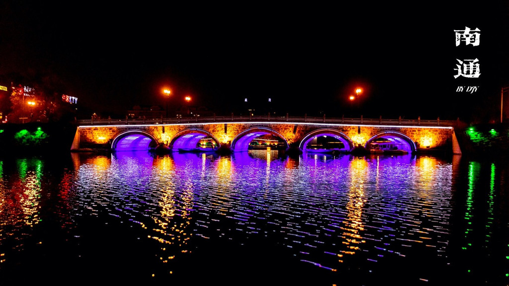 在小城夜游是一种享受,当夜幕低垂小城,华灯点亮万家的时候,人们才有心情在恬静悠然的氛围中漫步。各种闪烁着的霓虹灯,交织成成一片流光异彩的世界,在灯的海洋里,给人一种随意的潇洒和浪漫,第一次觉得 南通 如此温柔多情,令人沉醉。