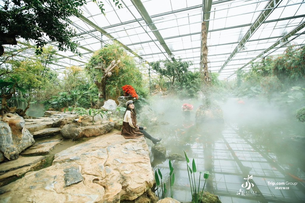 园中还有各种材质的景石精心堆叠而成的峡谷、飞瀑,溪水潺潺,雾气缭绕,徘徊其间,就仿佛置身仙境。