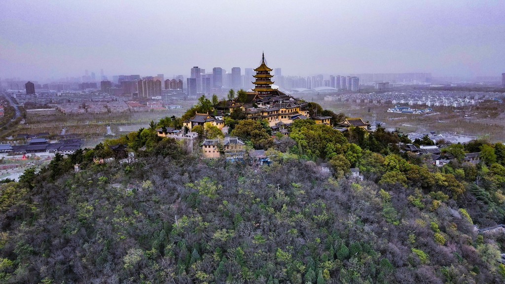 一路踏青而行,临湖而望,远处支云塔便是狼山最高处了。当地有民谣: 南通 三座塔,角分四六八,两塔平地起,一塔云霄插。说的便是城内的光孝塔、城东的文峰塔以及狼山这的支云塔。近处黑白天鹅仰颈而戏,好不惬意。