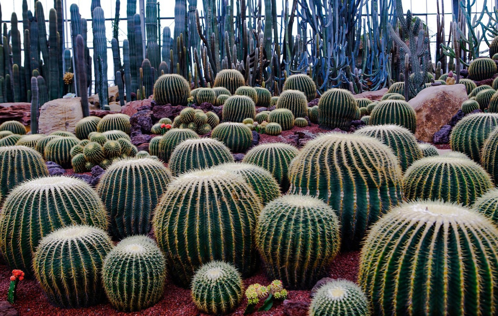 绿博园的震园之宝之一就是这个热带沙生馆。沙生馆也是三个展馆中最大的一个,占地一万多平方米。是由两个玻璃温室连接而成。这里面主要是各类沙生植物,很有南美墨西哥 的风景,很容易拍出美美的大片。