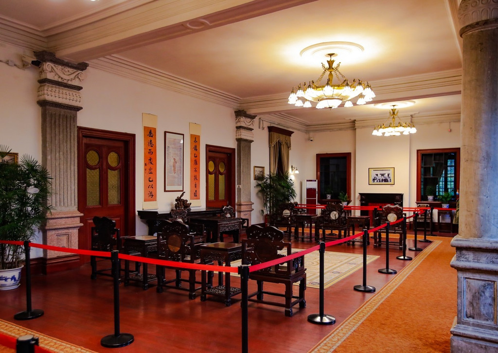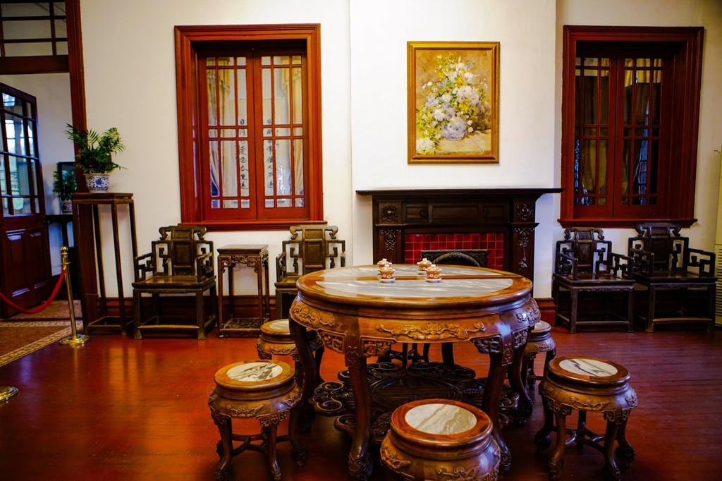这里则是张謇先生的故居,踩着楼梯,来到了二楼,正对大门的房间是厅堂,当年主人的用具一如既往地陈设在那里,和厅堂相连的还有一个中西合璧的游廊,经过游廊的各室内分别是介绍张謇先生兴办实业的所有事迹展示厅。