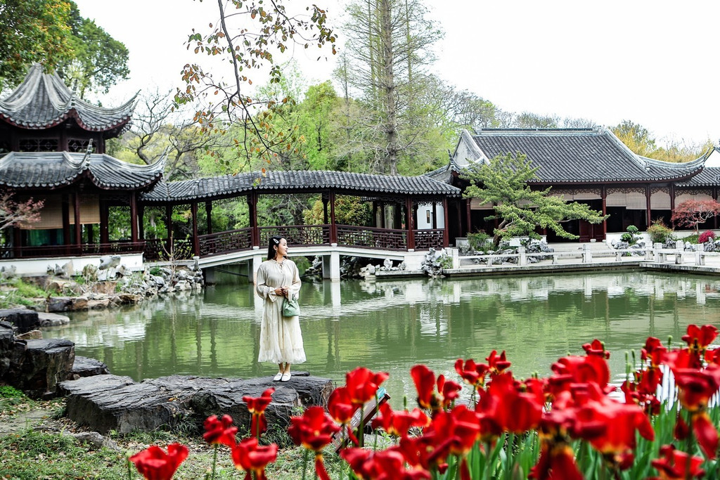 啬园,即清末状元、我国近代著名的实业家、教育家张謇先生的墓园。相比狼山风景区的广博辽远,同在狼山下小而美蔷园更让我惊艳不已。恰逢郁金香花展,园内真正姹紫嫣红,美不胜收。