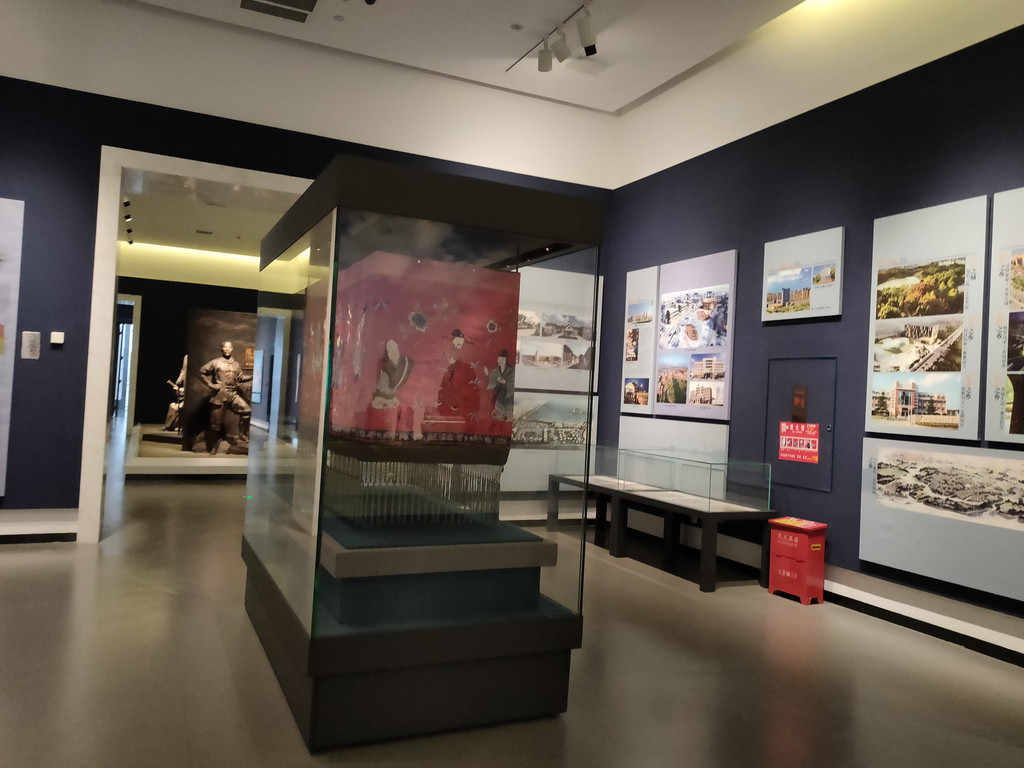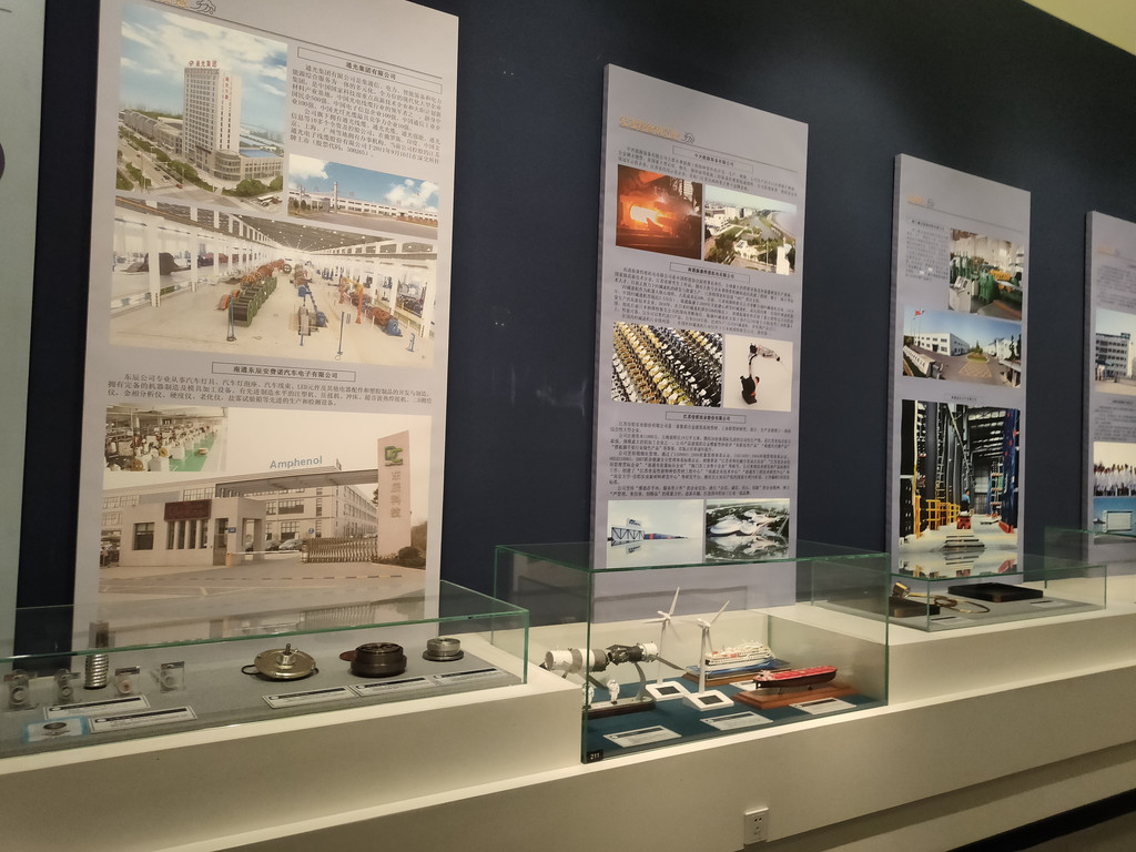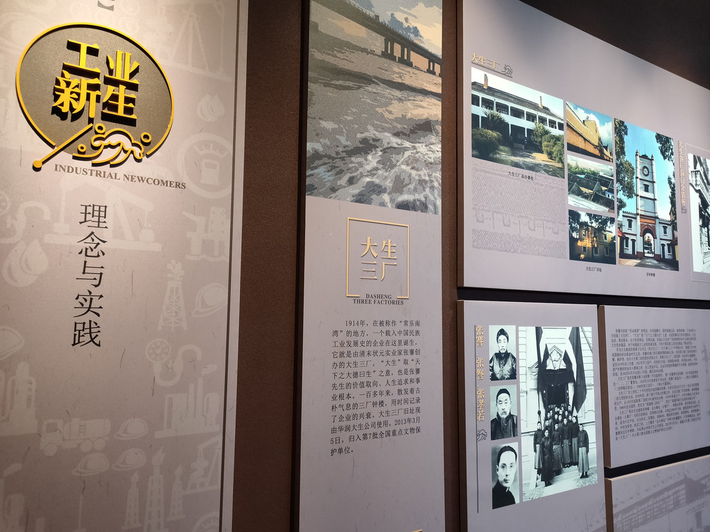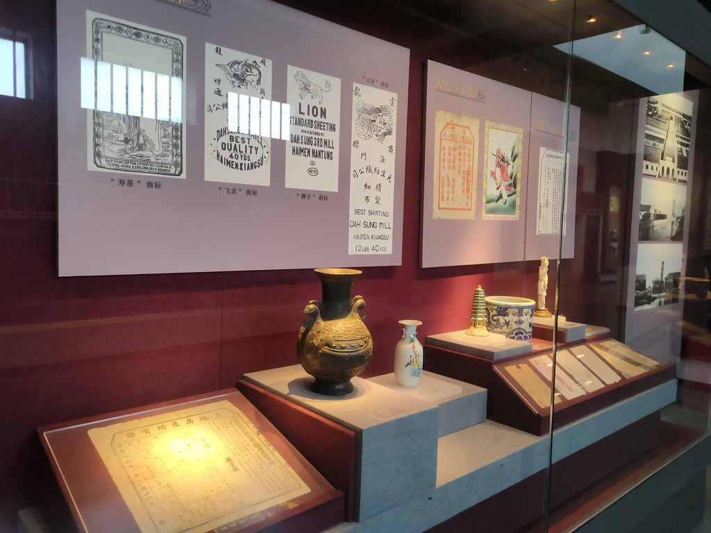 海门近代的发展史,绕不开张謇这个名字,他对于海门甚至南通的实业和教育发展作出了卓越的贡献。展厅用一组雕塑高度还原了张謇视察通海垦牧公司的场景,也陈列了大生纱厂总办事处门头的实景,还有一些机器设备,不知道是不是原来的旧物件儿。大生纱厂是张謇于清朝末年创办的一所私营棉纺织企业,初期招商进行得不太顺利,不过后来还是克服了种种困难,大生纱厂兴盛起来。厂区周围是产棉区,原料很便宜,工人的工资也比较低,加上当地发达的土法织布业,为棉纱提供了市场。2018年,大生纱厂入选中国工业遗产保护名录,后来列入第二批国家工业遗产名录。可以说,大生纱厂是南通近史民营企业的发展史上最浓墨重彩的一笔。