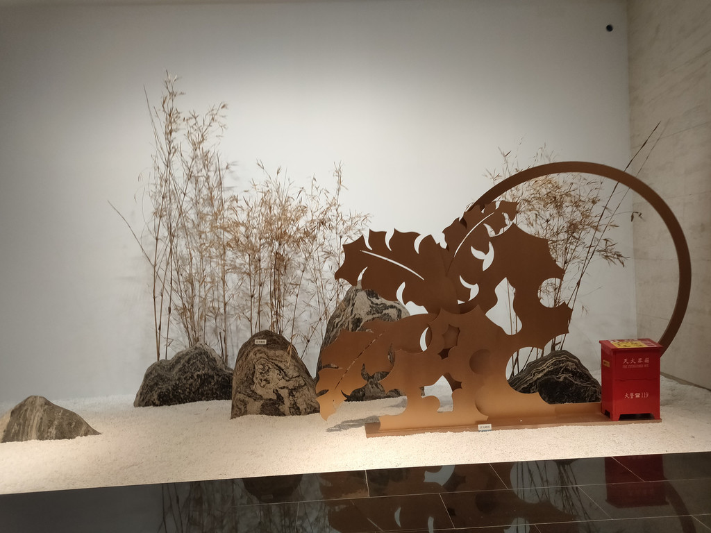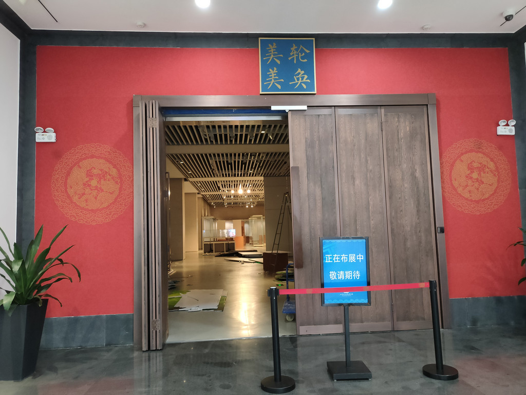 美轮美奂展厅正在布展中,现在没有开放。半开的大门里,正在撤下一些展览的柜子重新布置。