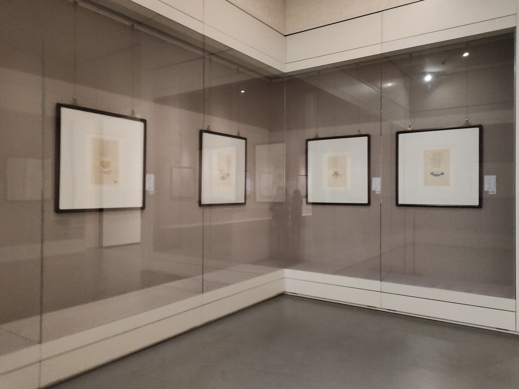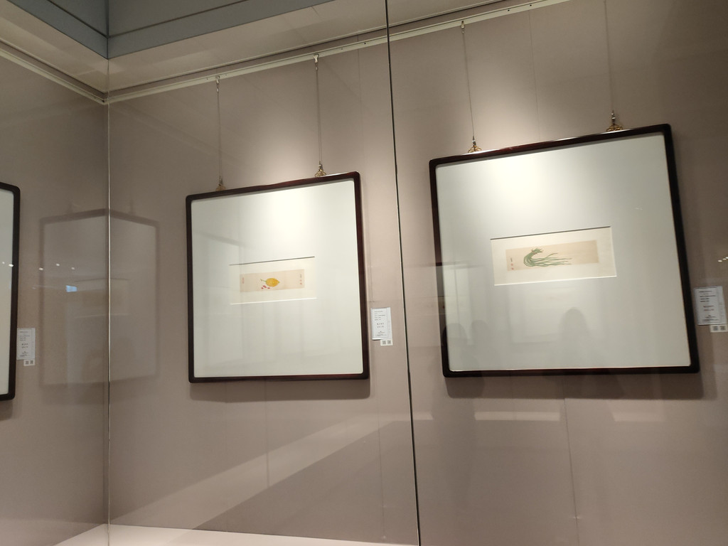 蔡志忠画展展出了多幅画作,形式很多样,有条幅,有长轴,有扇面,有画札,反正我认识的几种形式似乎都有。作品的题材很丰富,有山水画,有人物画,最有意思的是一组食之通味册,画了很多食物,虽然用的不是西方的写实技法,可看着这些美食,依然让人垂涎欲滴。
