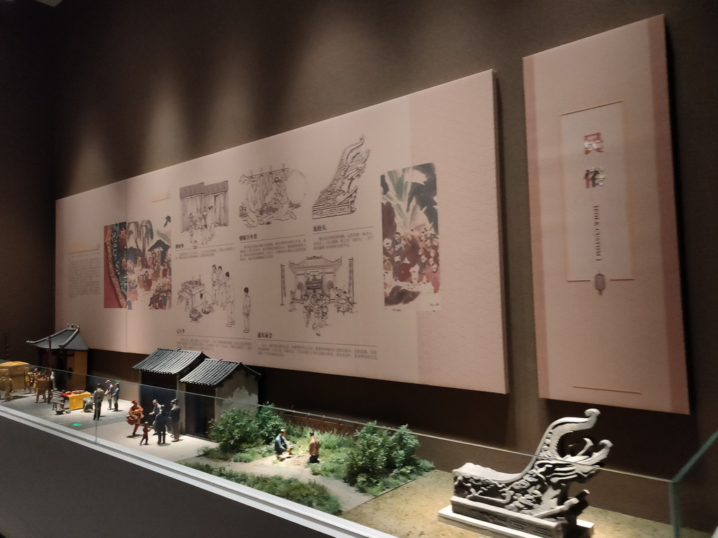 博物馆还用相当大的面积还原了一户江海人家,厅堂布置得很简洁,又充满了民居的气息。其实这些民居与江南很类似,说起来海门的语系与南通其他地方都不一样,属于吴语,所以即使他们说方言,对于我们来说也没有沟通上的问题。