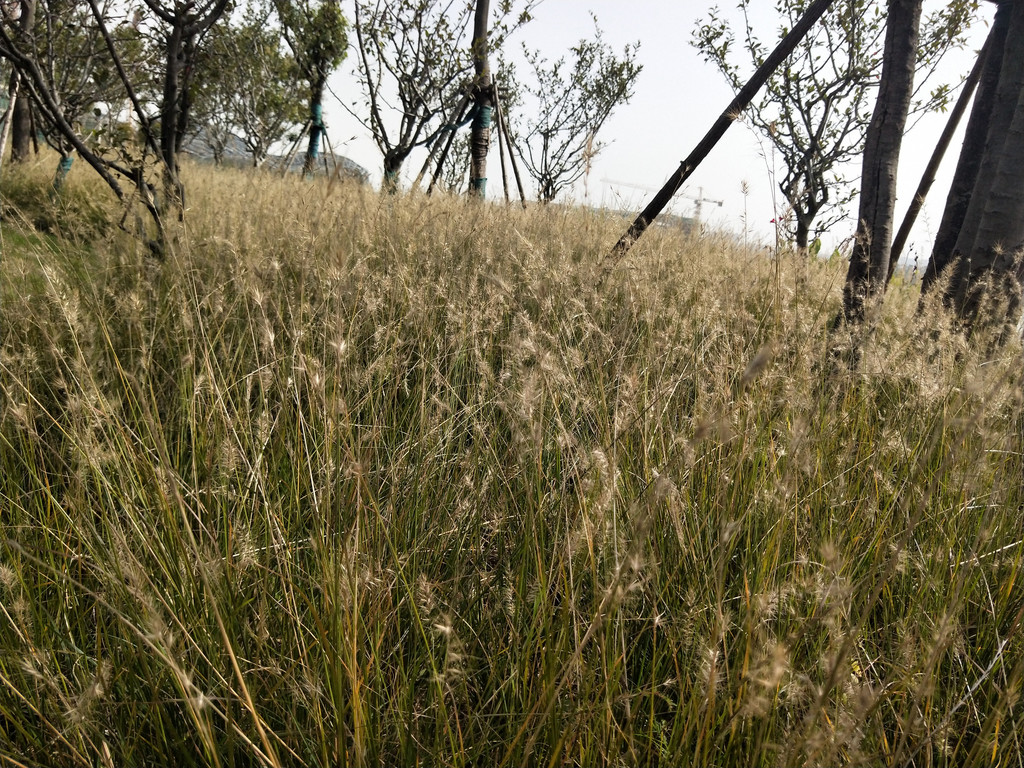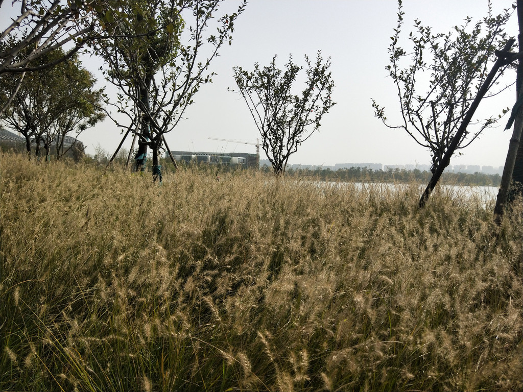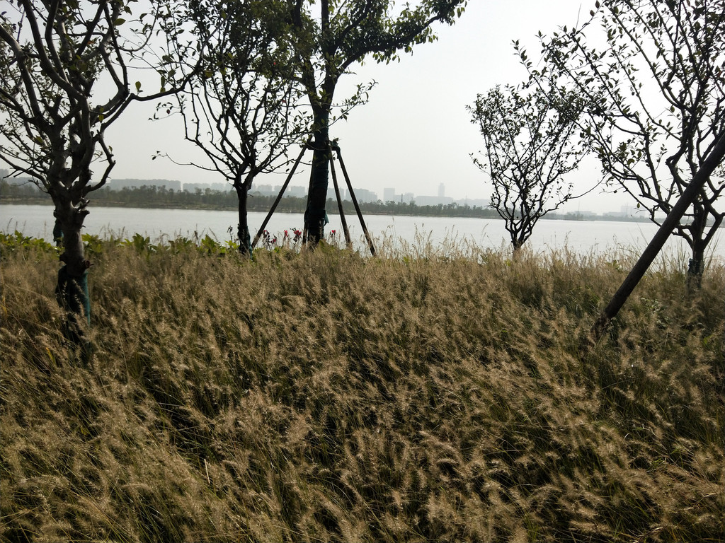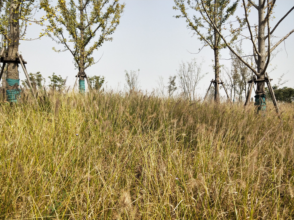 狼尾草作为景观植物并不算稀奇,很多公园都会栽上一丛两丛的,也有公园会成片栽植。紫琅湖的狼尾草就不止一片,隔三岔五的,就在树旁看到大片狼尾草。能够这样“奢侈”的原因,就是公园足够大,有的是空闲的地块。