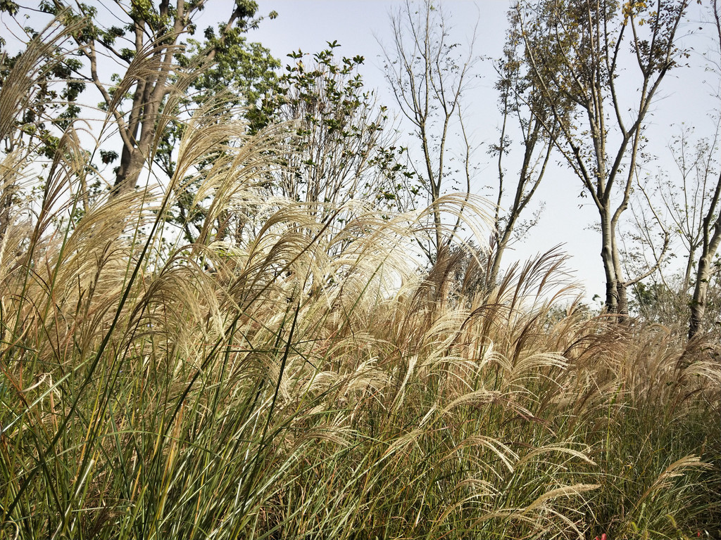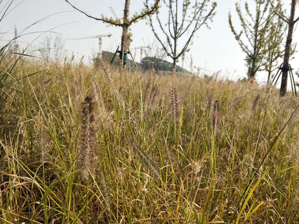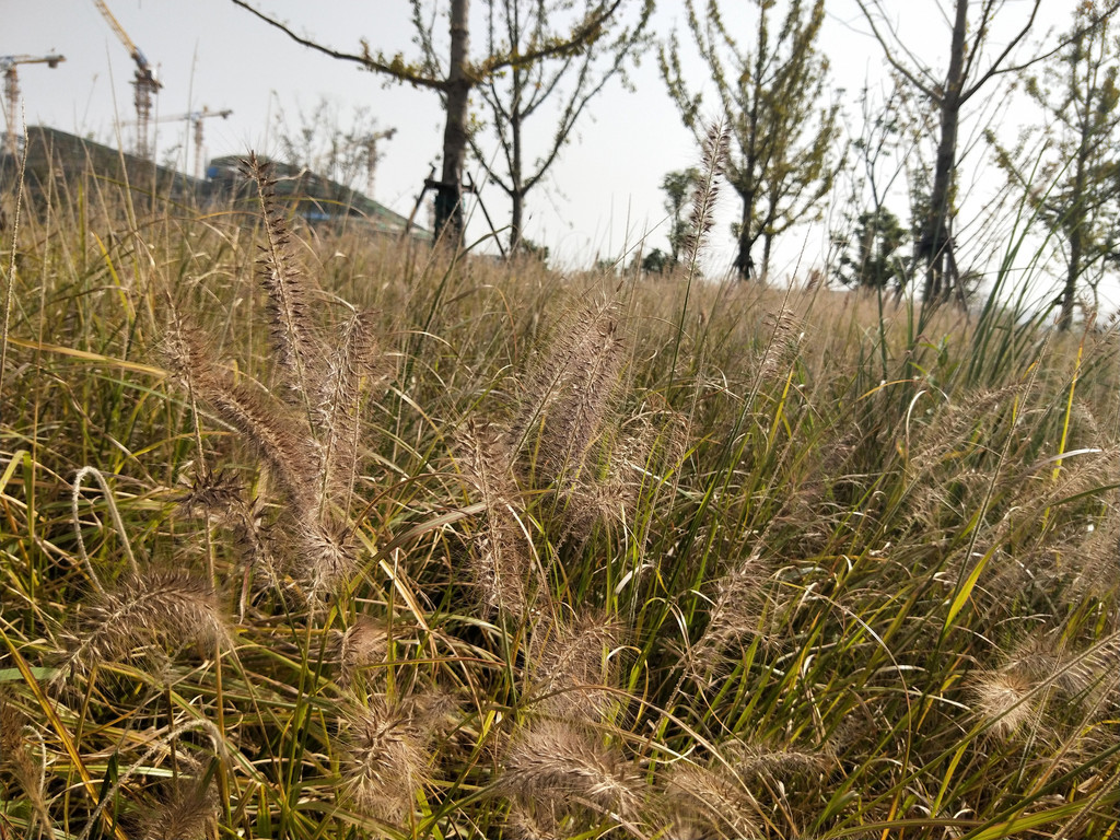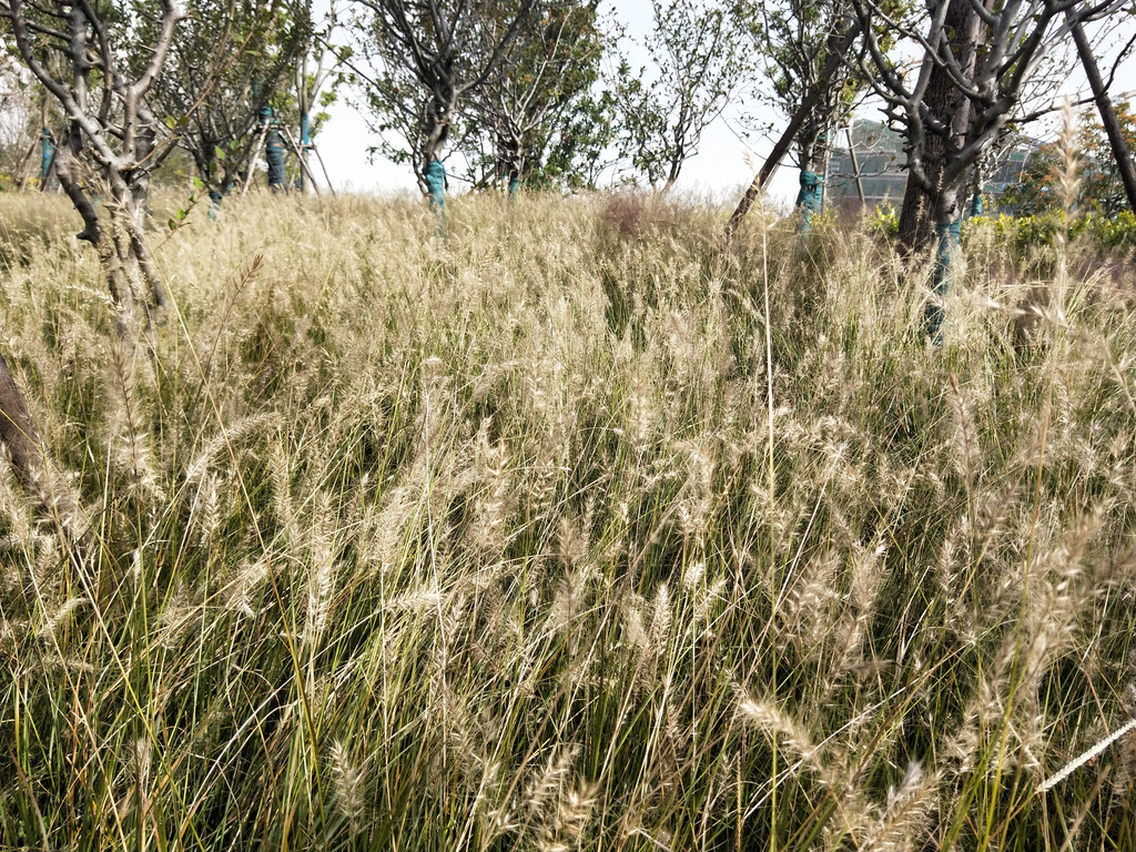 狼尾草作为景观植物并不算稀奇,很多公园都会栽上一丛两丛的,也有公园会成片栽植。紫琅湖的狼尾草就不止一片,隔三岔五的,就在树旁看到大片狼尾草。能够这样“奢侈”的原因,就是公园足够大,有的是空闲的地块。