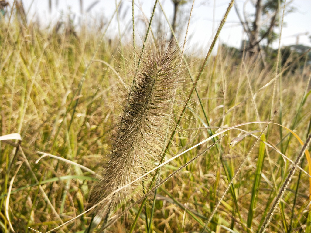 它们大多生长在山坡,滩涂,或渠畔、堤边,不挑地块,不拣肥瘦,不求回报,中国自东北、华北经华东、中南及西南各省区均有分布。李时珍在《本草纲目》里把狼尾草纳入《谷部》,它有很多别名,稂、狼茅、孟、宿田翁、守田等等,可见狼尾草早在很久以前分布就相当广,不过估计也是被农民伯伯当成田间杂草,需求清除的那种存在。否则,难免会影响作物的生长。而且看它穗状的花序,种子的传播应该也是比较容易的,当然要把它们扼杀在萌芽状态了。真要说起来,它们在草原的待遇会好得多,毕竟它也是一种优质的牧草。像敕勒川里“风吹草低见牛羊”,可能就会有狼尾草的存在。不过,可能狼尾草自己也没有想到有一天会登堂入室,作为观赏草在各大公园强势登录,还很受游客们的喜爱吧?狼尾草,也算是熬出头了。