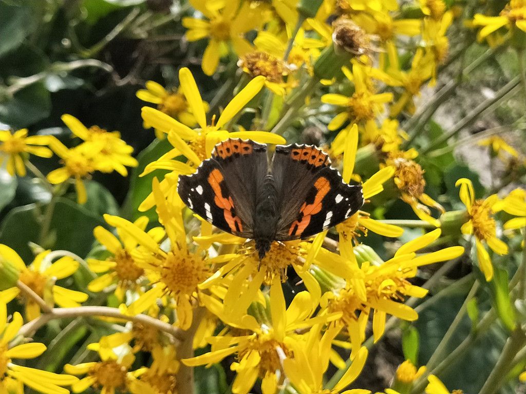 一只五彩斑斓的蝶栖在花瓣上,我悄悄地把手机慢慢靠近,居然还真的近距离地留下了它的倩影。后来又有一只蝶飞过来,小蜜蜂们也不甘寂寞,勤劳地采起蜜来。我忍不住笑了,不管它名称多少迷幻,眼前的花朵才是踏踏实实的呀。