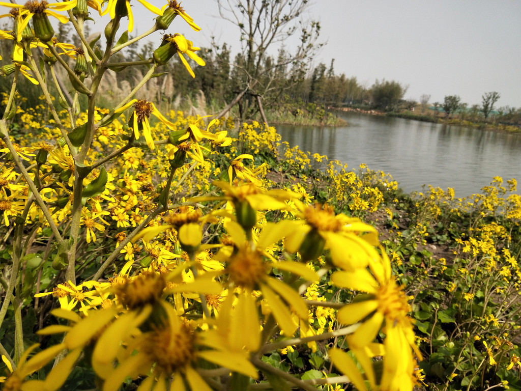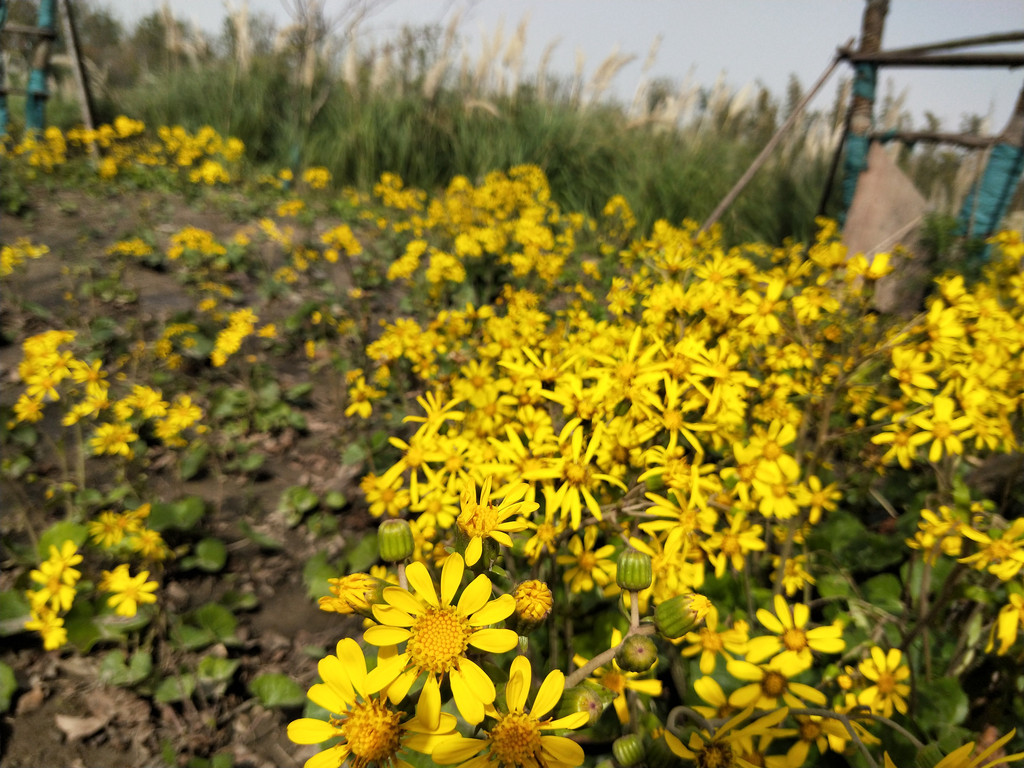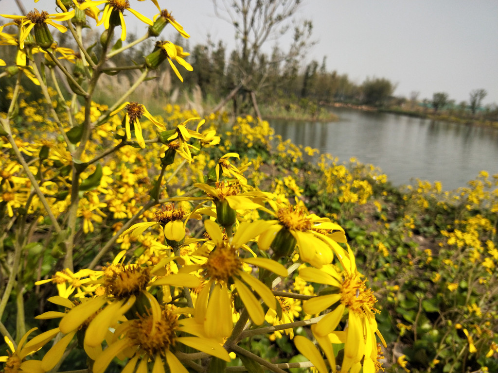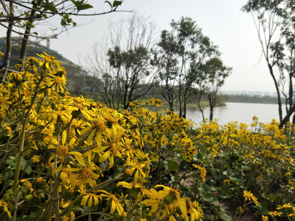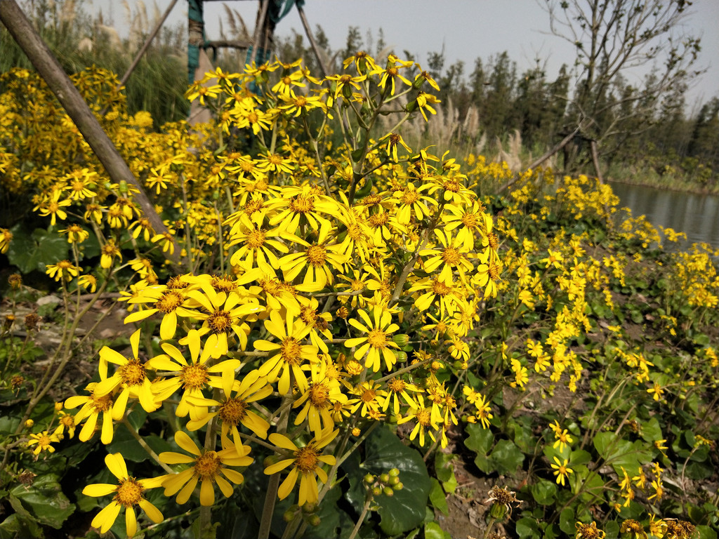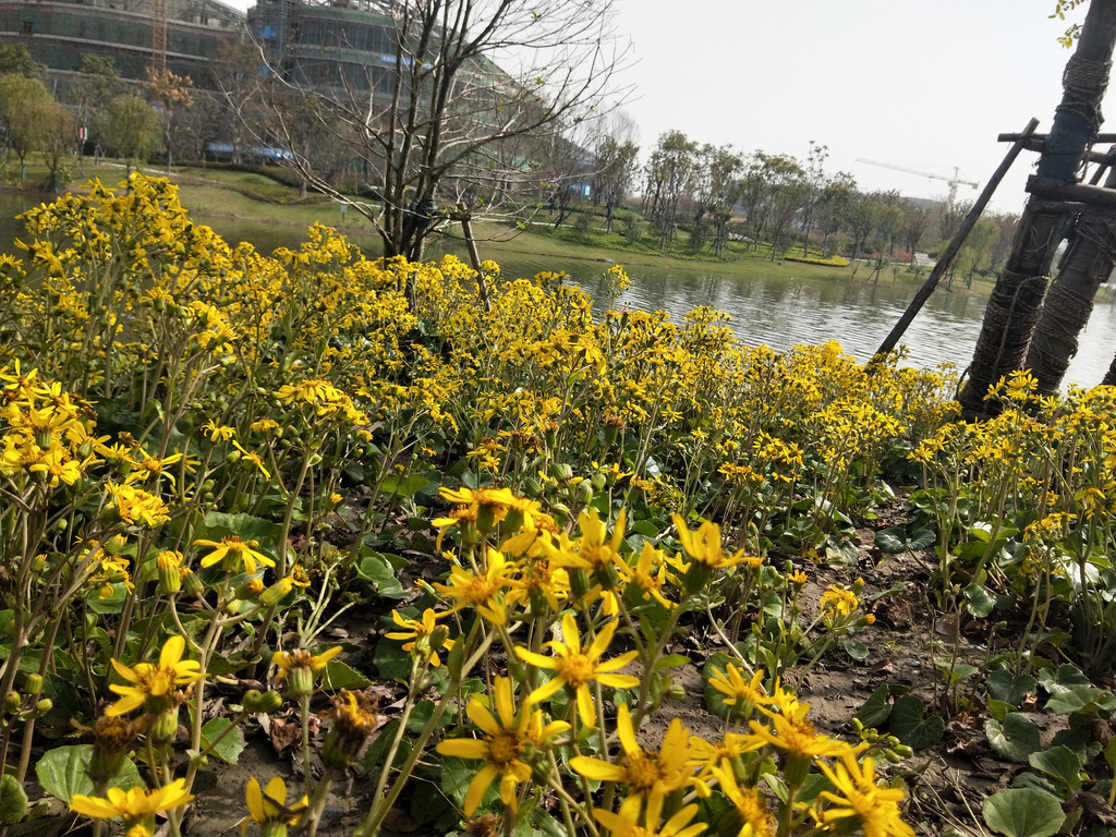 在紫琅湖公园,离翠芦莉花田不远的河滩上,生长着成片的大吴风草,它们明亮的颜色,总能让人们老远就能注意得到。
