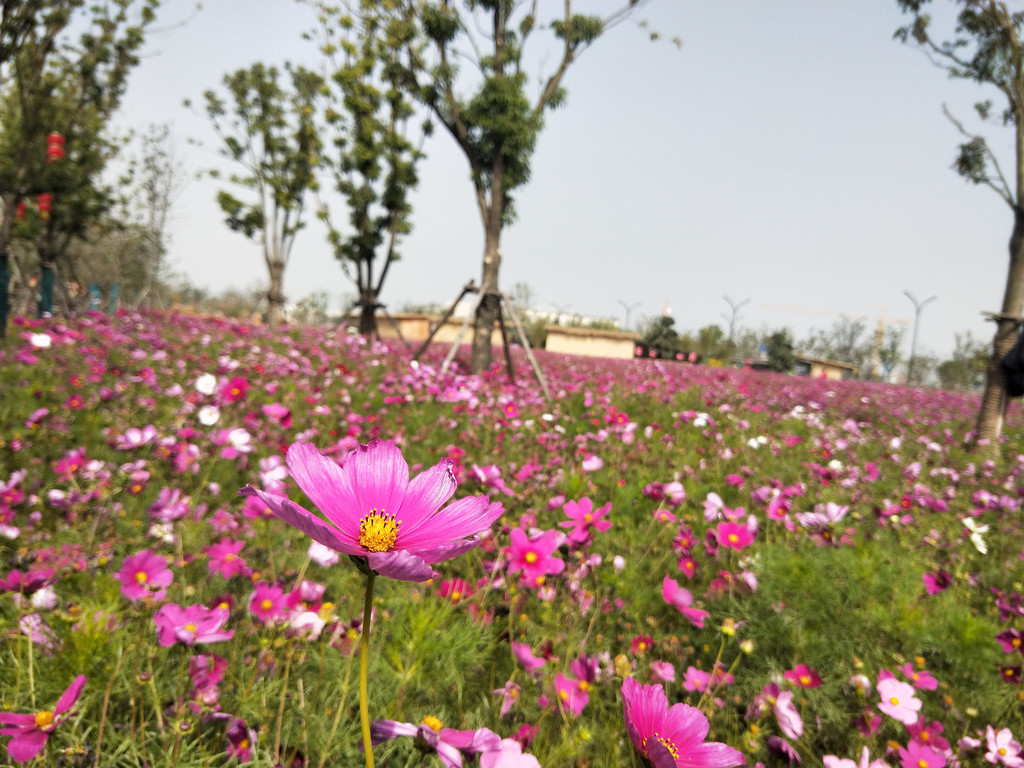 波斯菊有个很好听的别名叫秋英,顾名思义就是秋天的花。可是这种来自墨西哥的菊科植物与中国传统的秋菊并不相同,秋天固然可以开花,暮春也能花开如海,权看你啥时候播种,就跟种菜似的,吃完一茬再播一茬,还能再吃一茬。