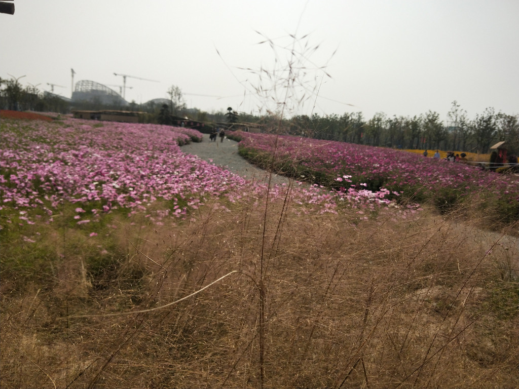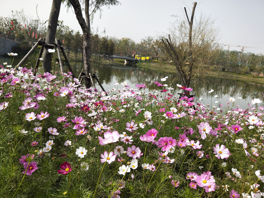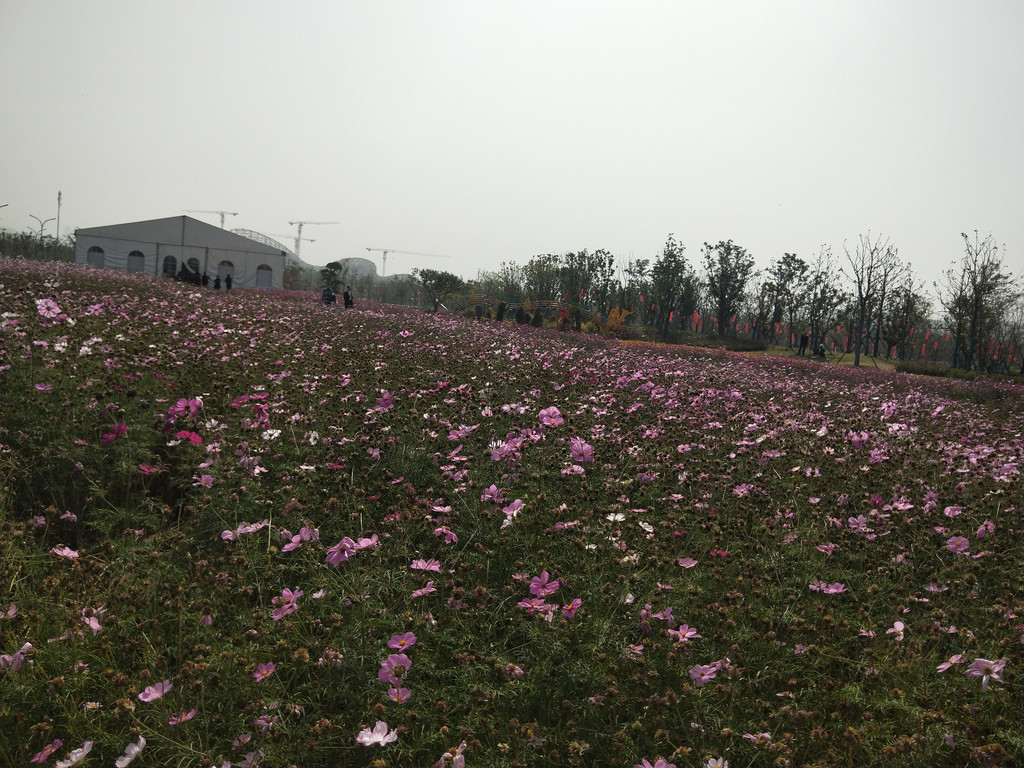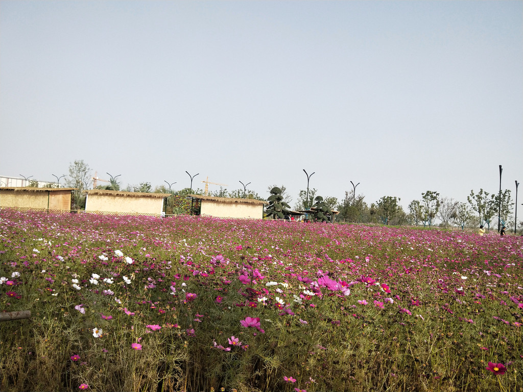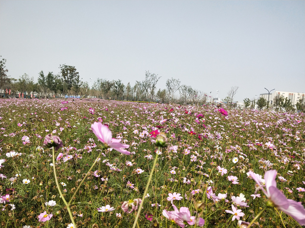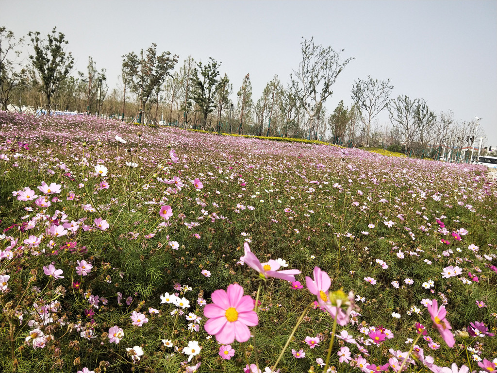 自从第一次见到波斯菊以后,几乎每年都会与它来个亲密的接触。除了头两年,其实后来倒也不是特意非要去看望波斯菊,主要是因为它们的栽植范围太广了,不经意间就会遇到一片花海,规模还都不小。紫琅花海也有大片的波斯菊,栽植在百日草的一路之隔。