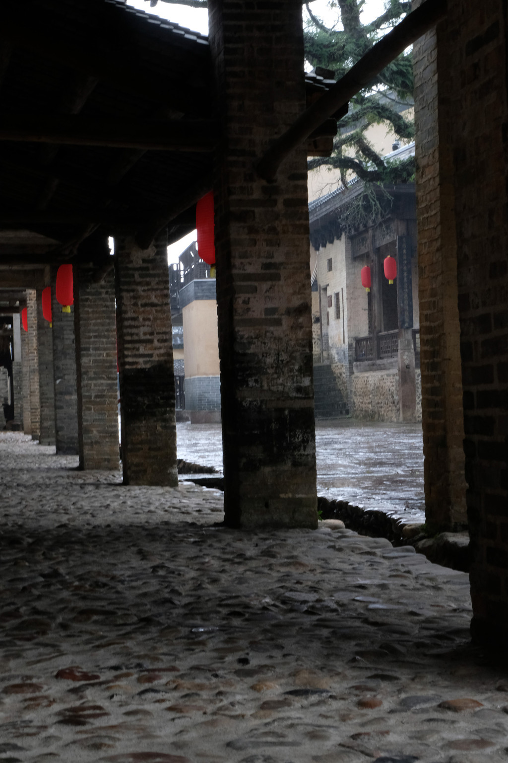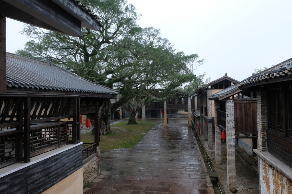环绕的骑楼石街,细雨中冷冷清清,石街的老房子,有村民居住,场景似仍停留在那过去的岁月里。