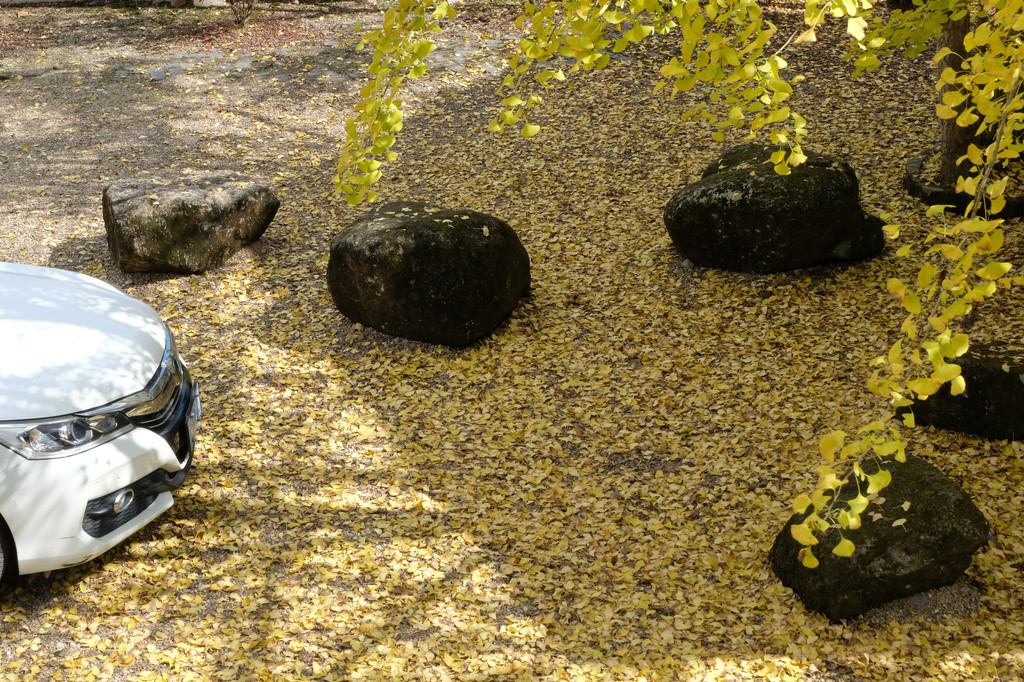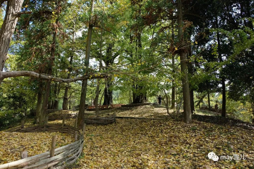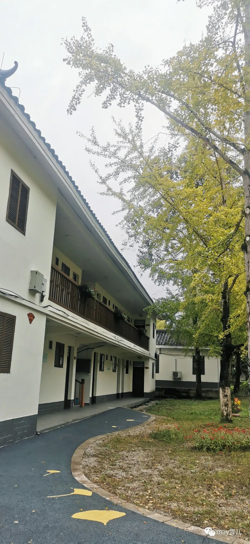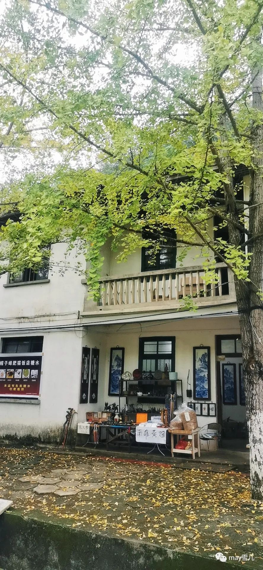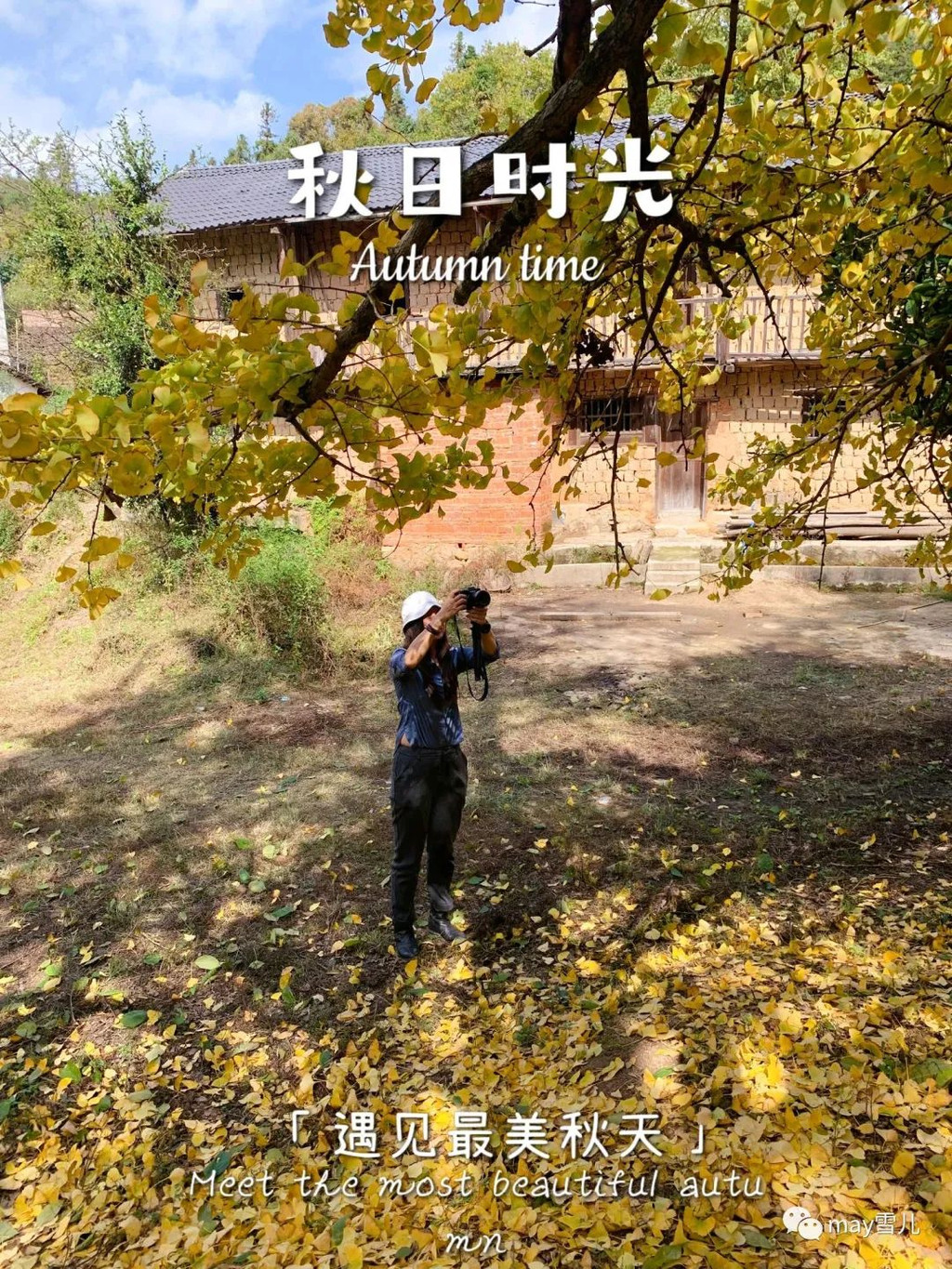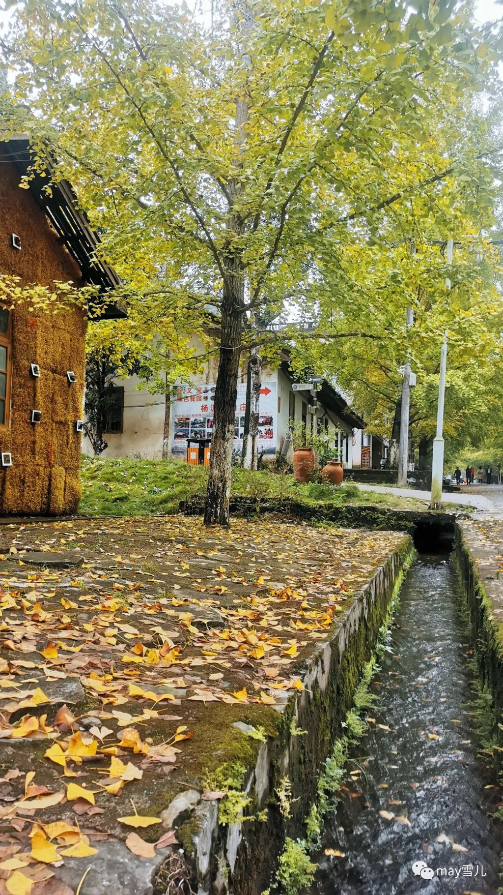 阳光之下的黄叶熠熠生辉,与帽子峰的不同,这里的银杏树古老苍劲,透着满浸的岁月沧桑,枝叶与老屋,似是在相望相守着岁月流年。